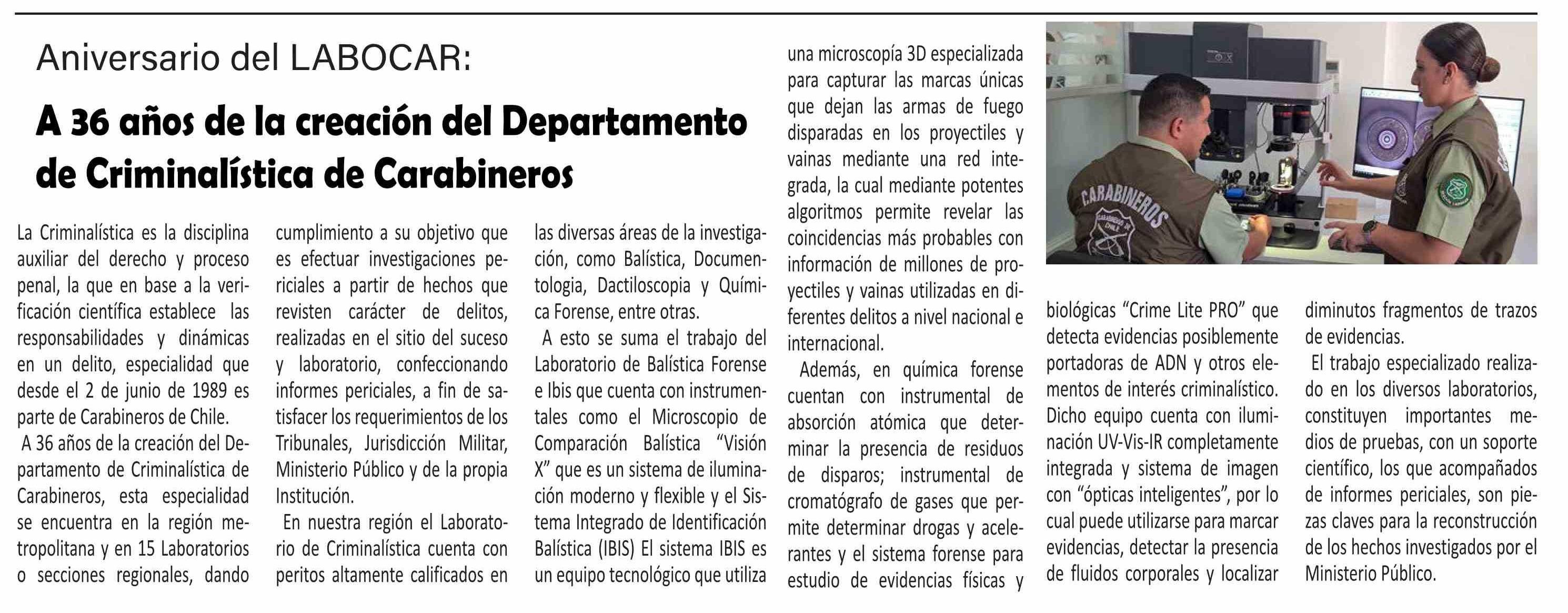 A 36 años de la creación del Departamento de Criminalística de Carabineros