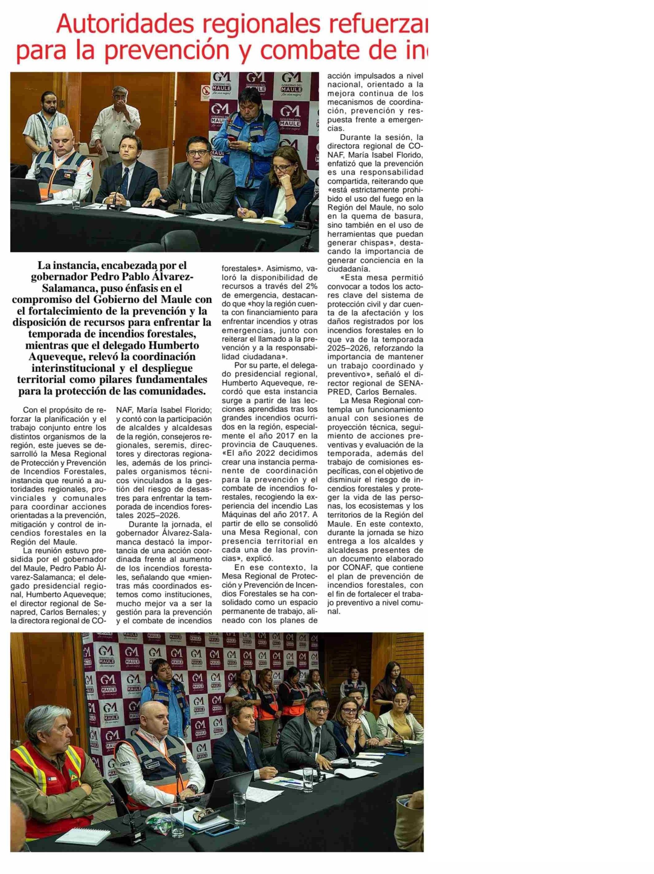 Autoridades regionales refuerzan coordinación para la prevención y combate de incendios forestales
