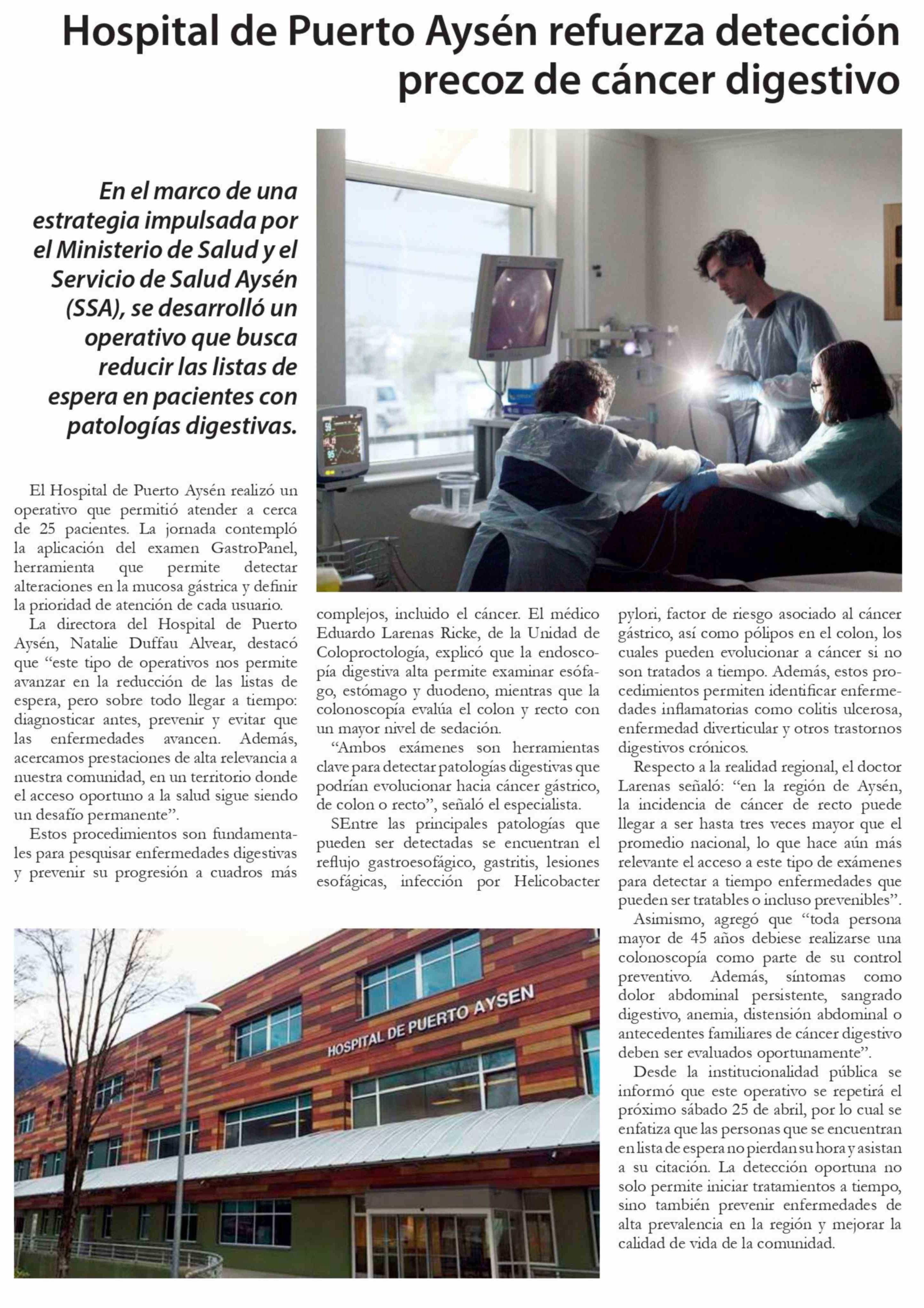 Hospital de Puerto Aysén refuerza detección precoz de cáncer digestivo