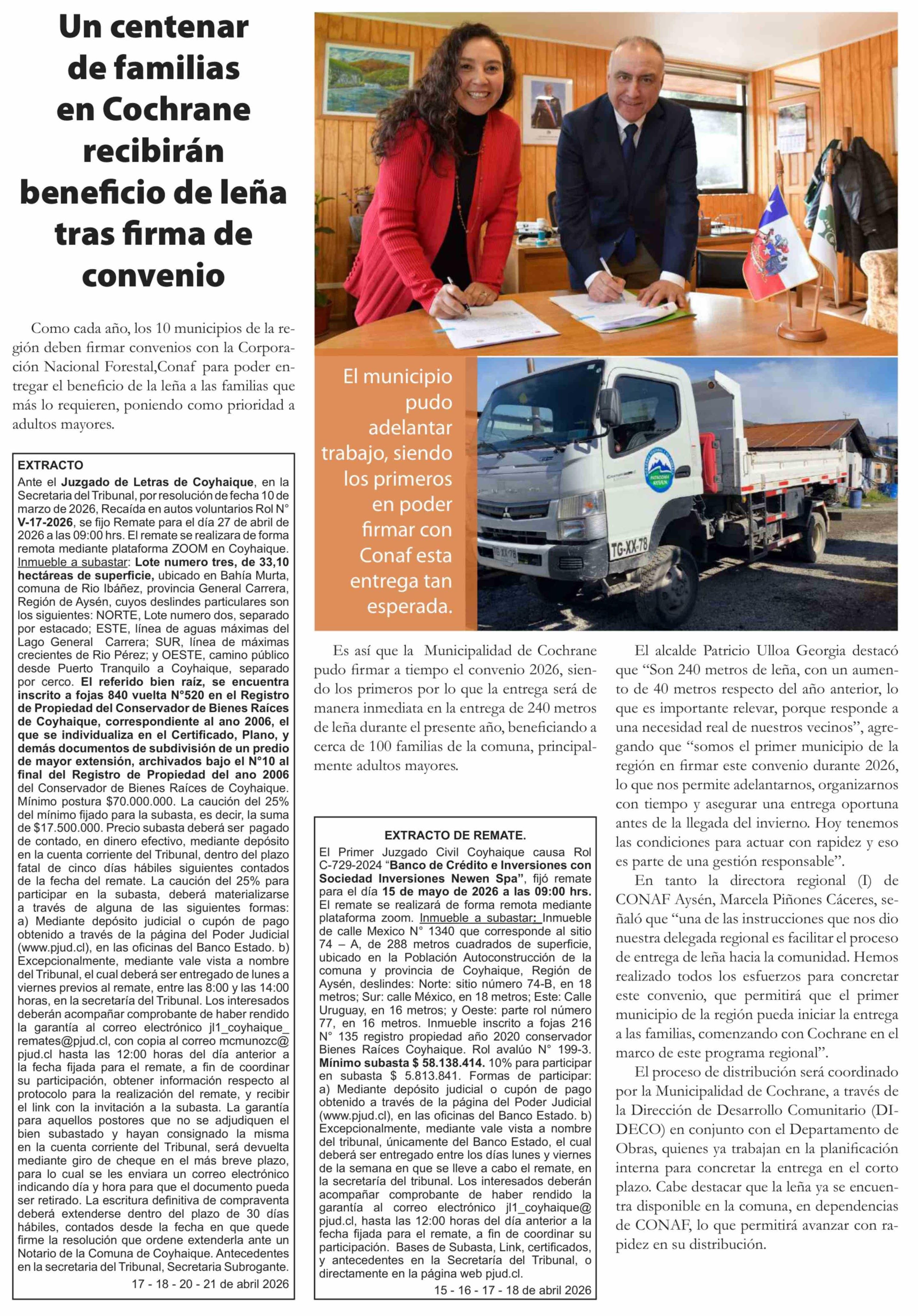 Un centenar de familias en Cochrane recibirán beneficio de leña tras firma de convenio