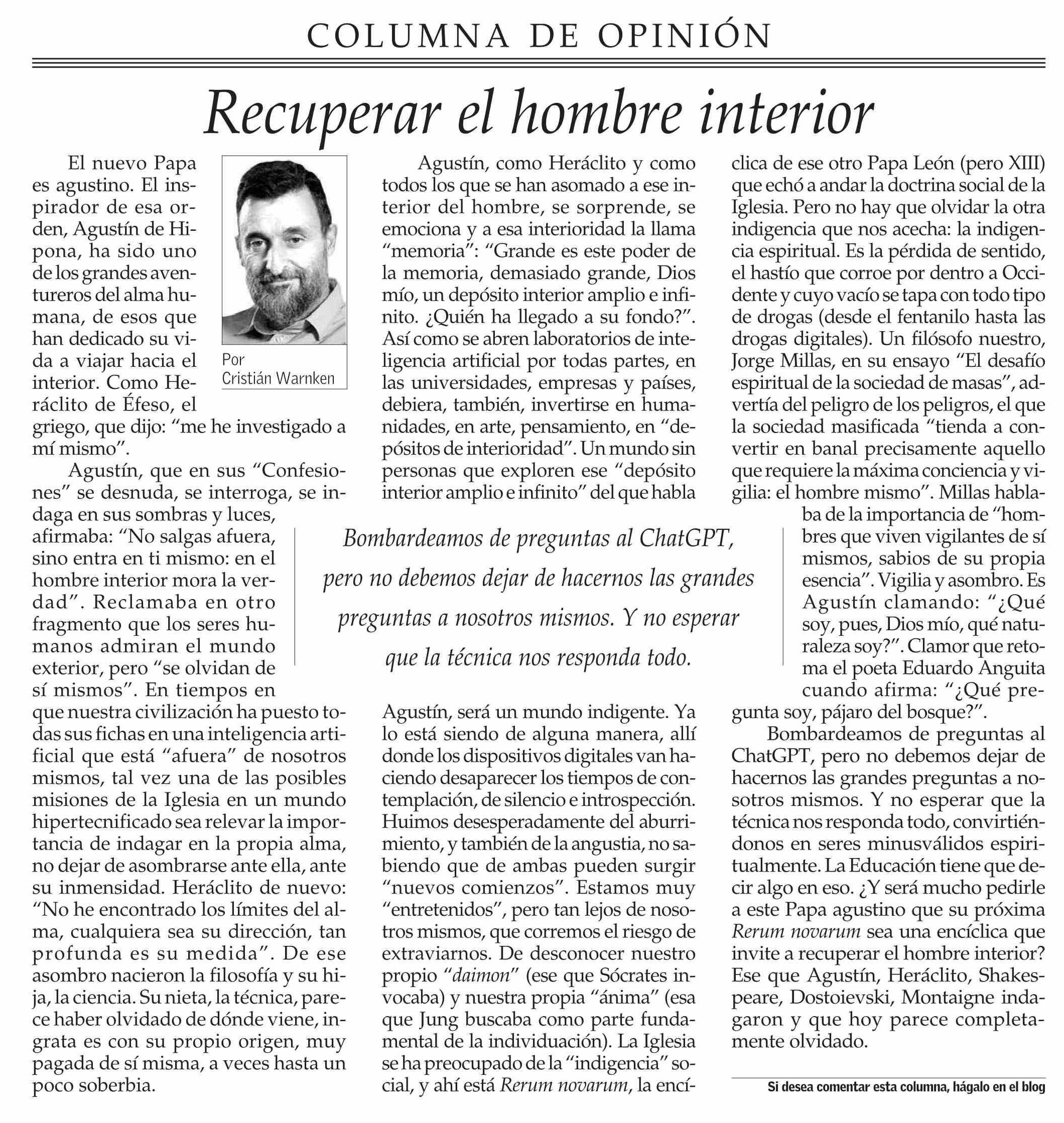 COLUMNAS DE OPINIÓN: Recuperar el hombre interior