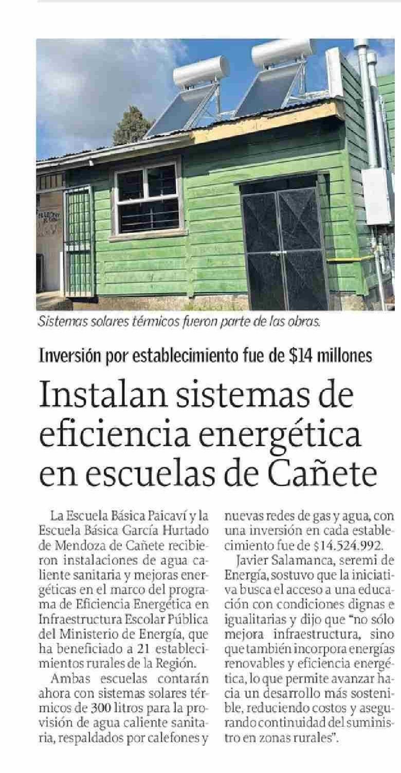 Instalan sistemas de eficiencia energética en escuelas de Cañete