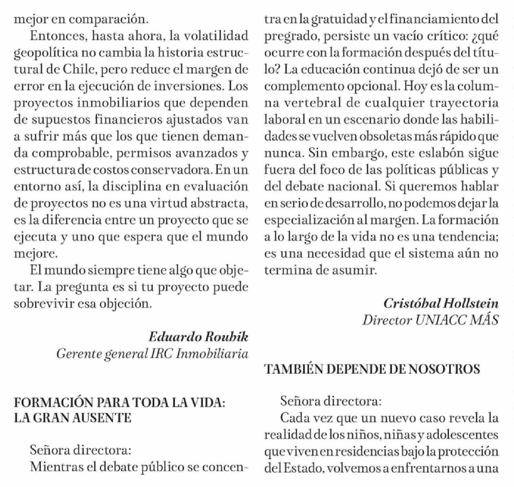 Cartas: FORMACIÓN PARA TODA LA VIDA: LA GRAN AUSENTE