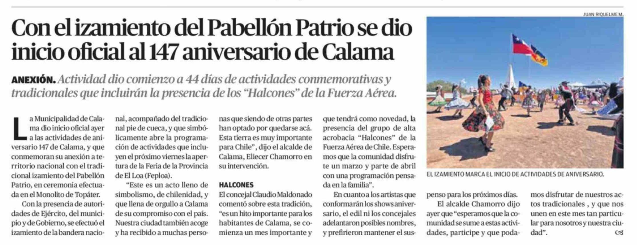 Con el izamiento del Pabellón Patrio se dio inicio oficial al 147 aniversario de Calama