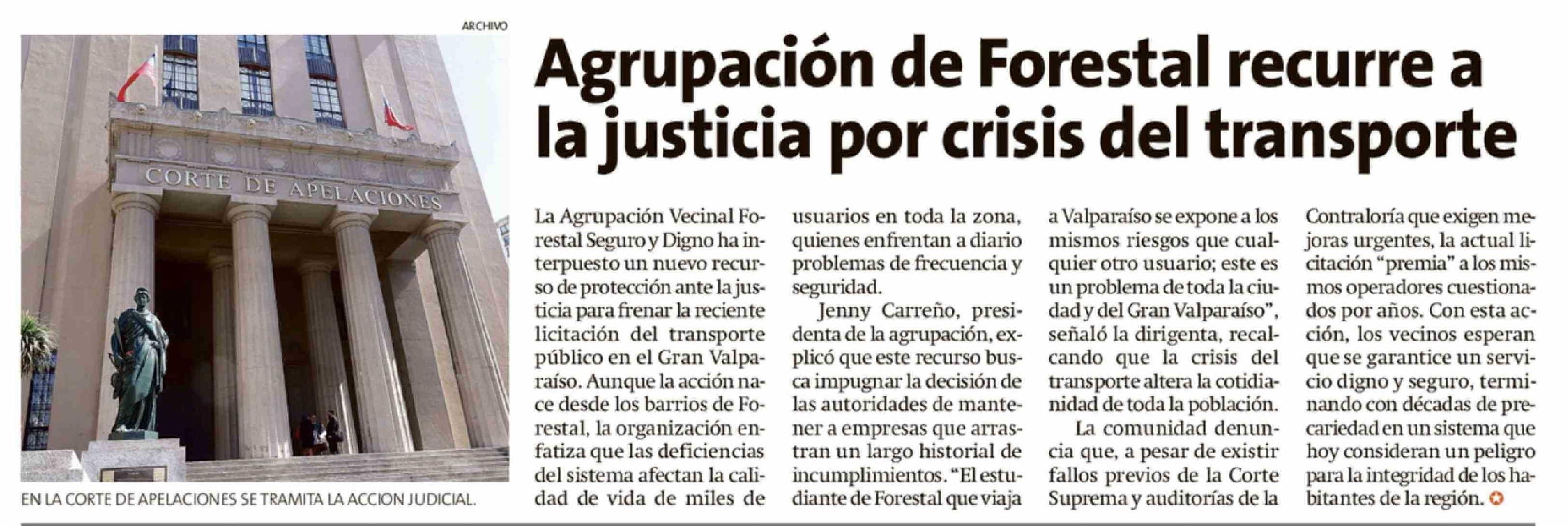 Agrupación de Forestal recurre a la justicia por crisis del transporte
