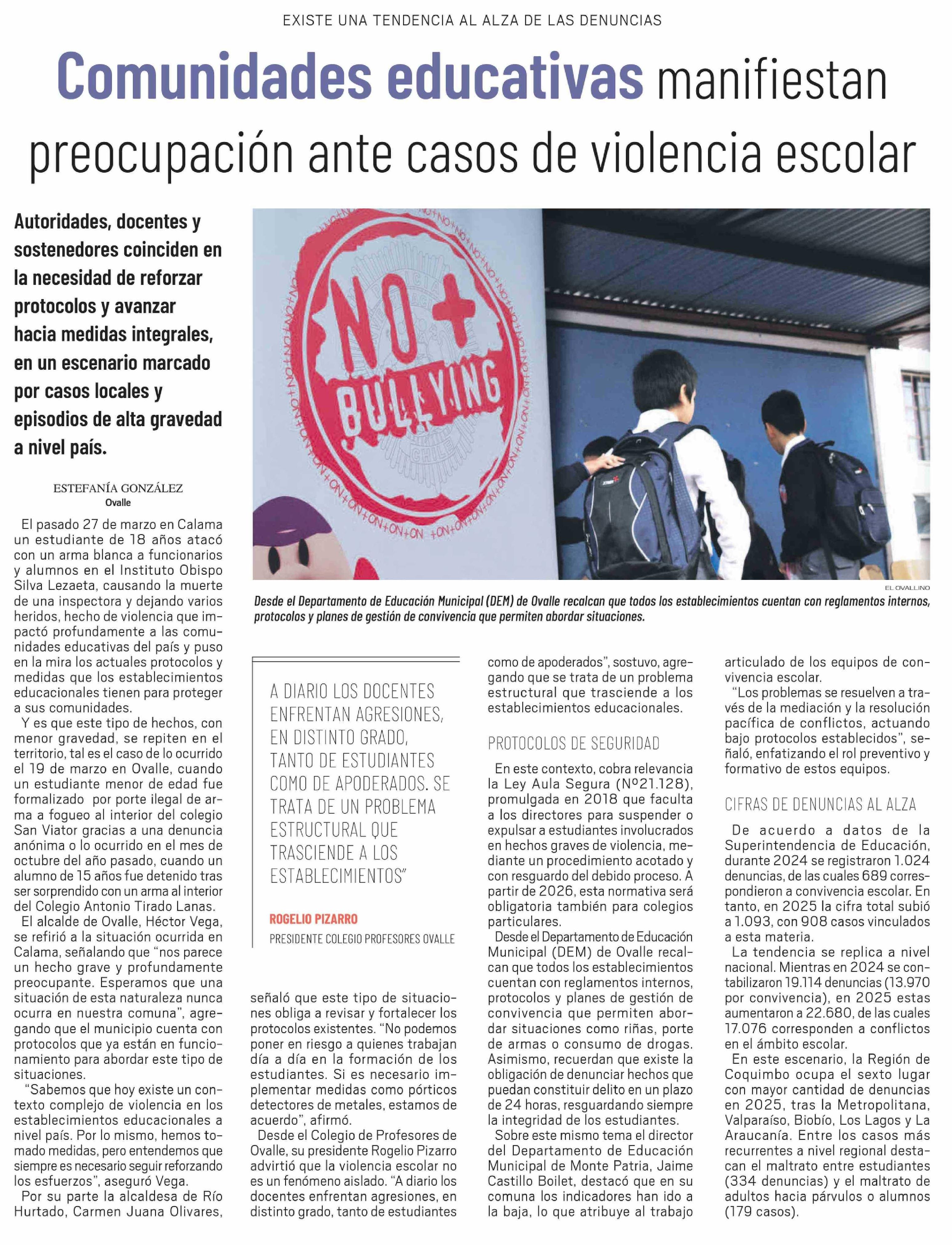 Comunidades educativas manifiestan preocupación ante casos de violencia escolar