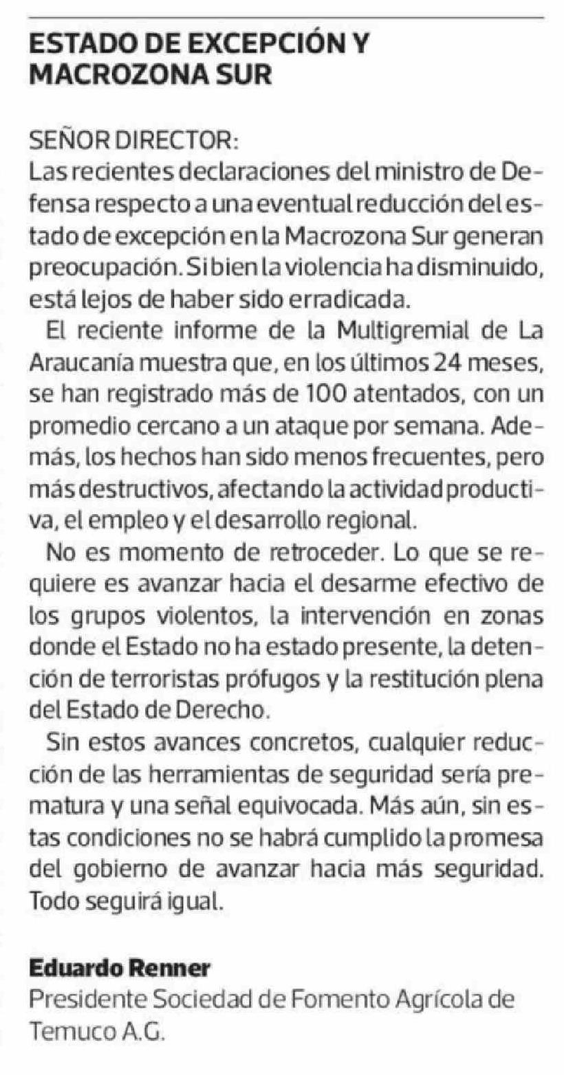 Cartas: ESTADO DE EXCEPCIÓN Y MACROZONA SUR