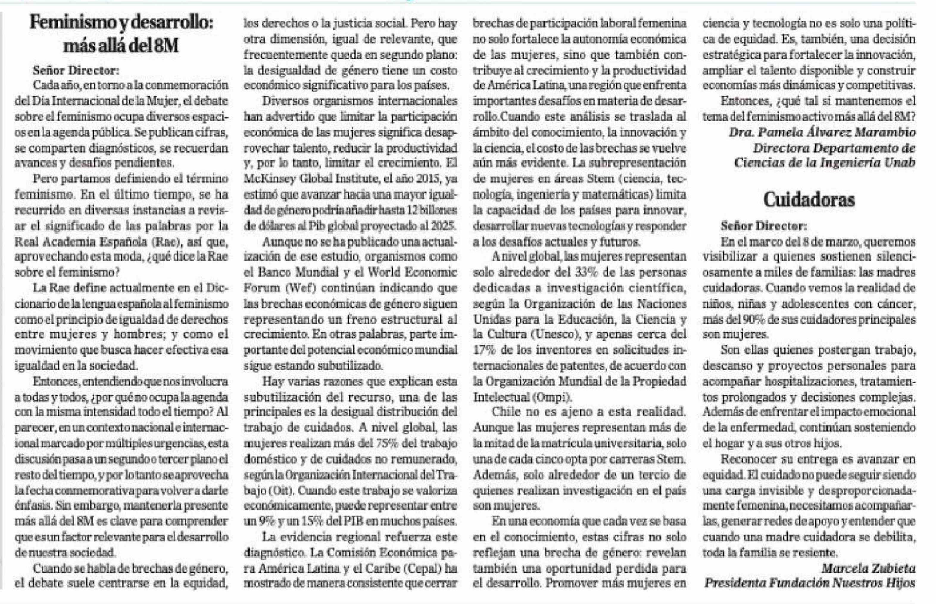 Título: Cartas: Feminismo y desarrollo: más allá del 8M