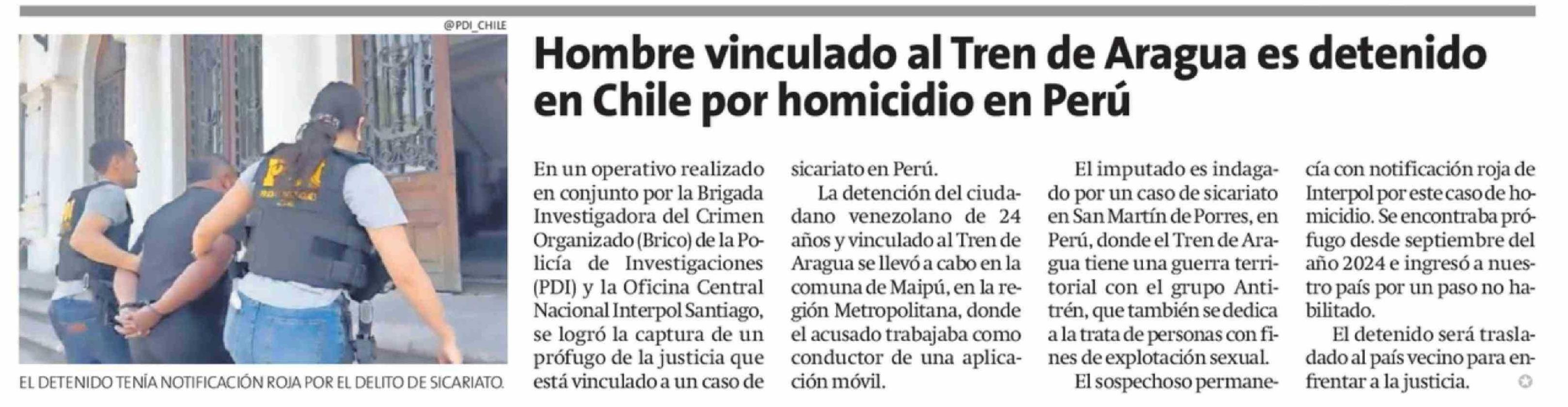 Hombre vinculado al Tren de Aragua es detenido en Chile por homicidio en Perú