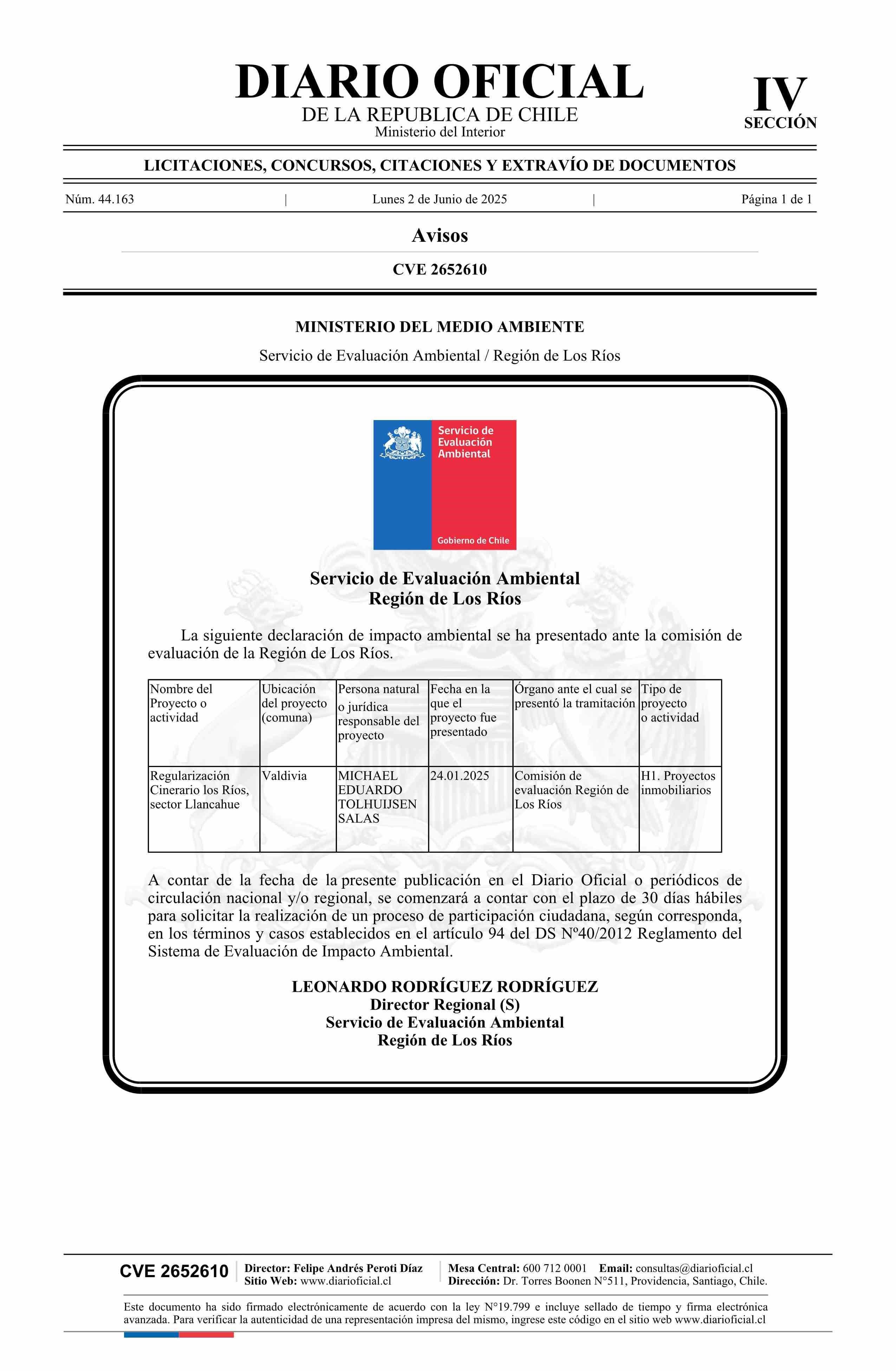 | Título: | AVISO LICITACIONES: Listado de proyectos o actividades sujetos a Declaración de Impacto Ambiental |
