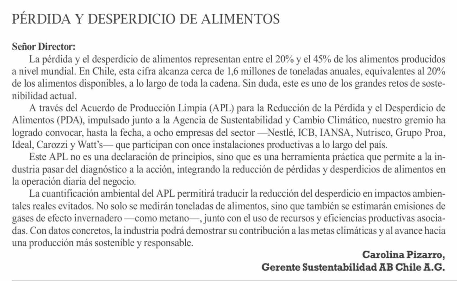 Cartas: PÉRDIDA Y DESPERDICIO DE ALIMENTOS