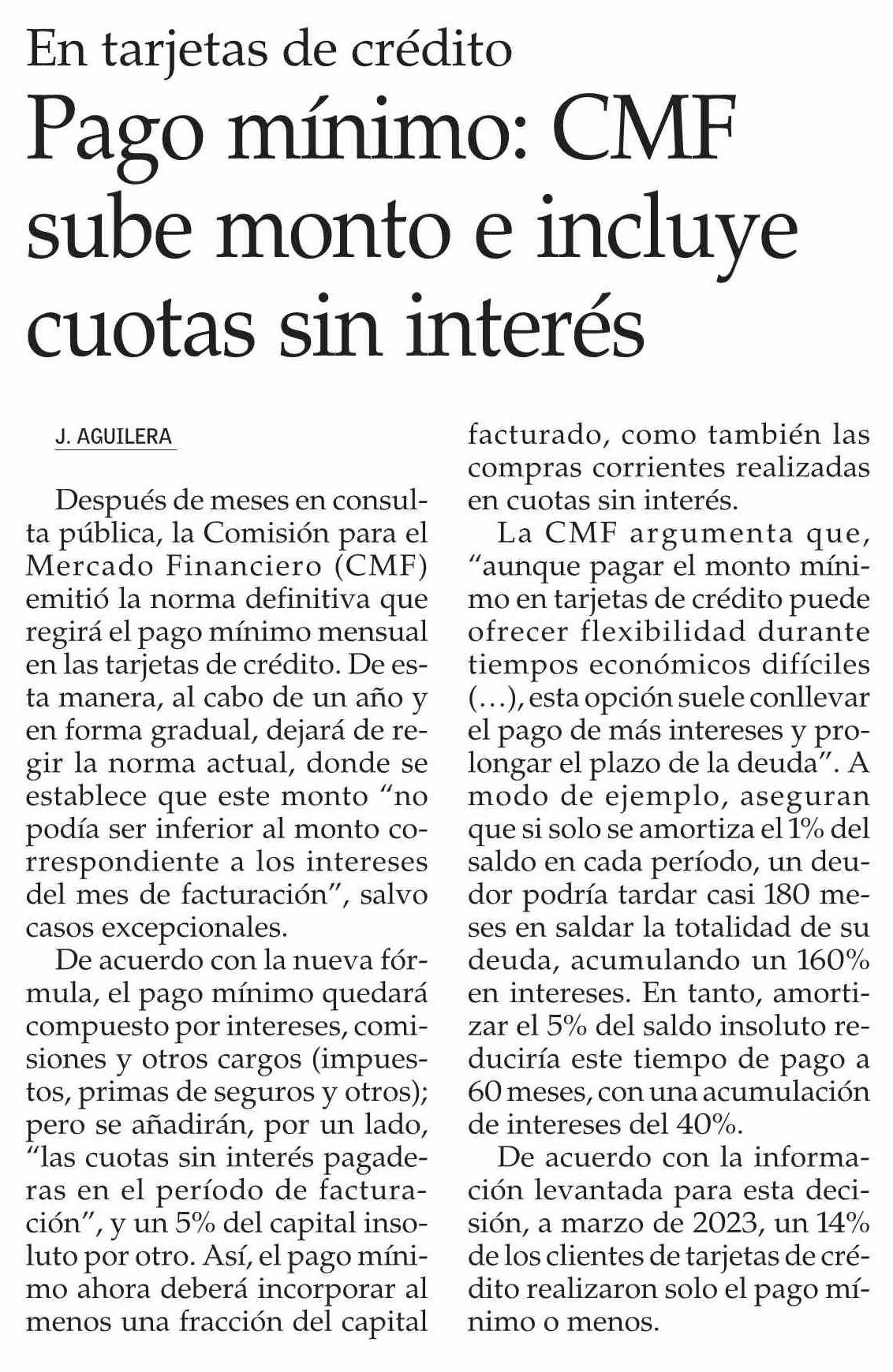 Pago mínimo: CMF sube monto e incluye cuotas sin interés