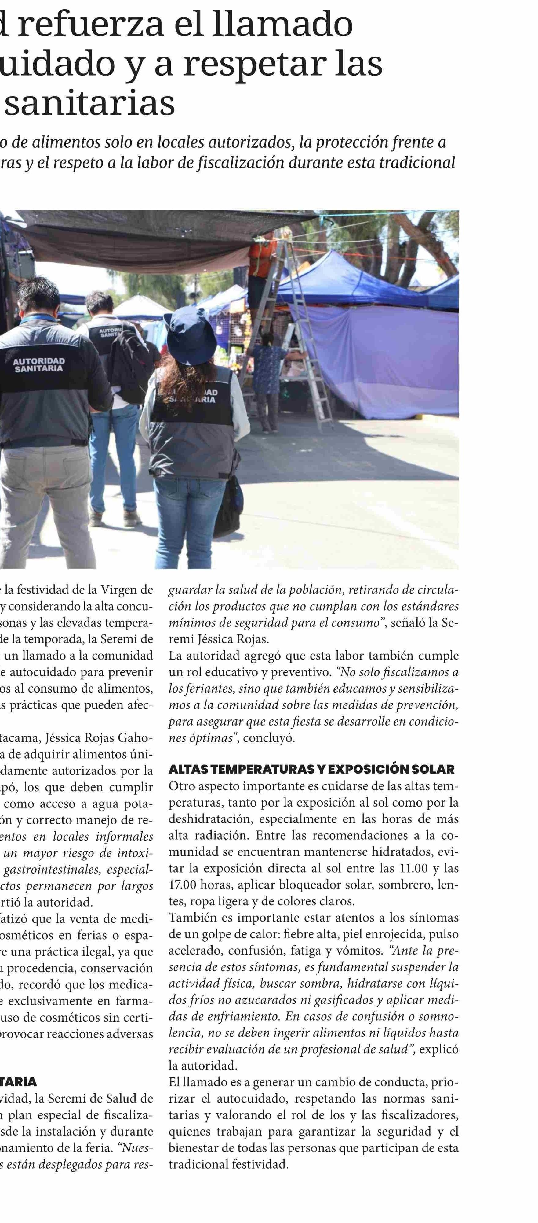 Fiesta de La Candelaria: Seremi de Salud refuerza el llamado al autocuidado y a respetar las normas sanitarias