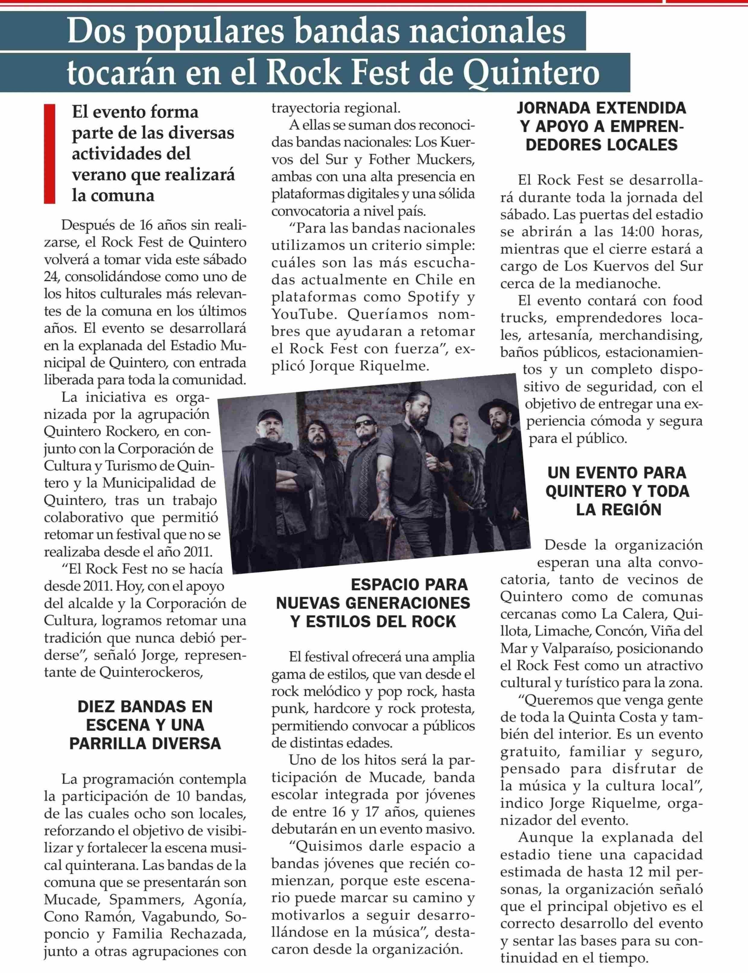 Dos populares bandas nacionales tocarán en el Rock Fest de Ouintero