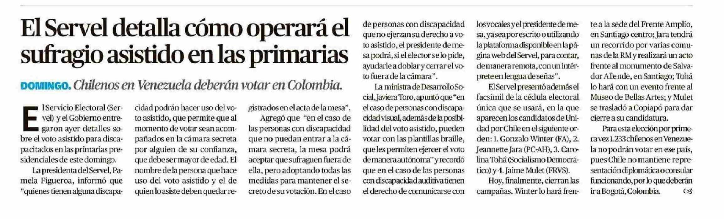 El Servel detalla cómo operará el sufragio asistido en las primarias