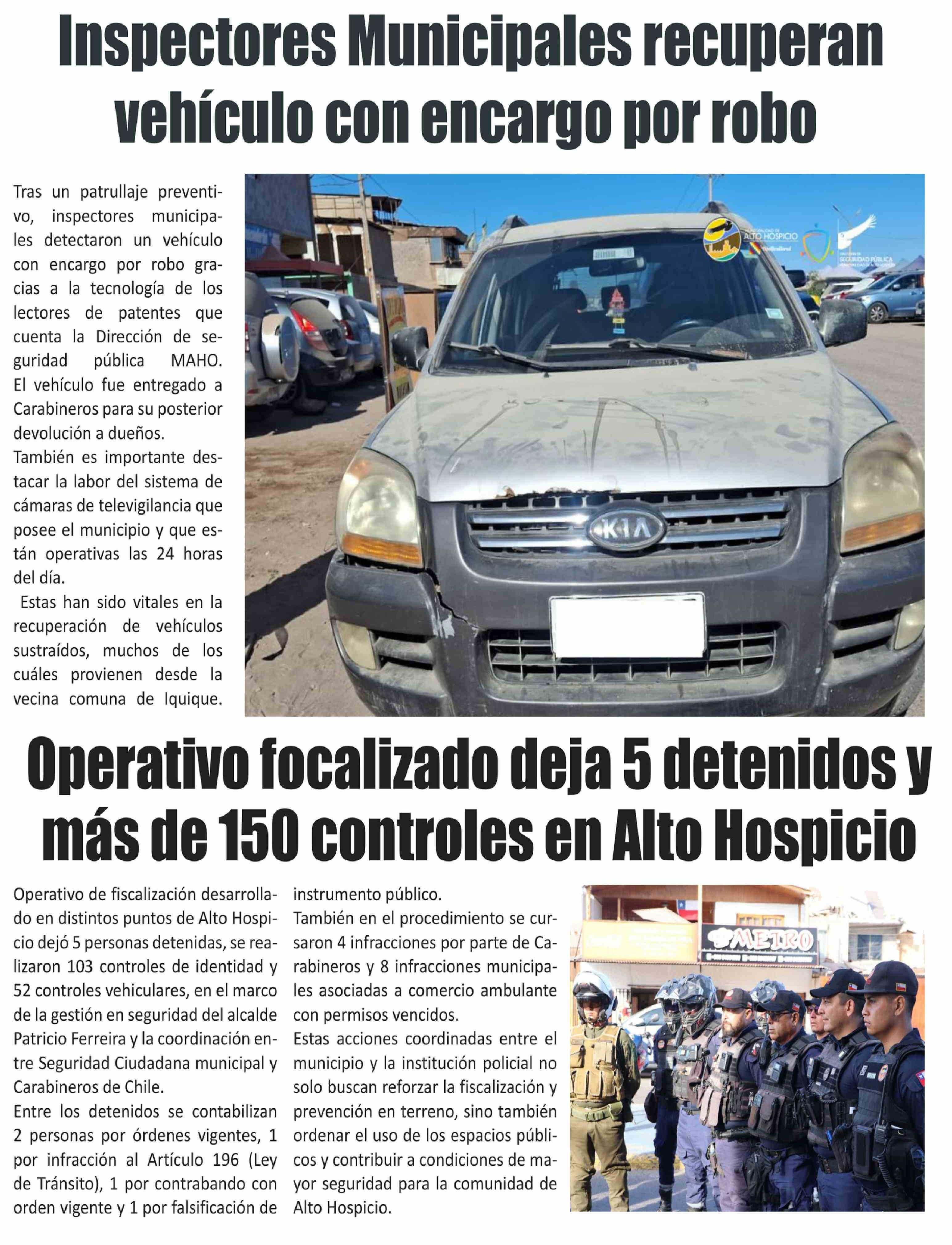 Operativo focalizado deja 5 detenidos y más de 150 controles en Alto Hospicio