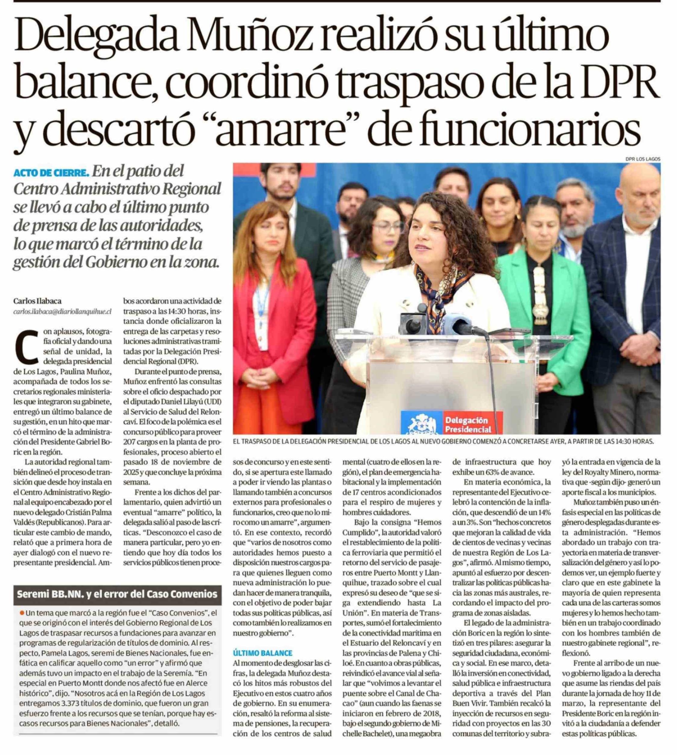Título: Delegada Muñoz realizó su último balance, coordino traspaso de la DPR y descartó "amarre" de funcionarios