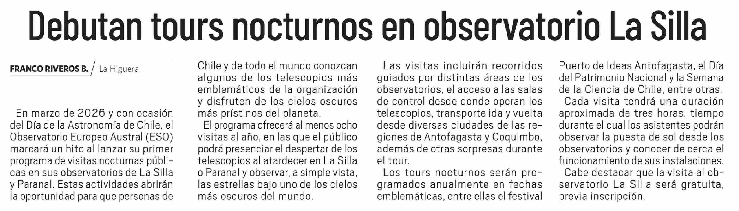 Debutan tours nocturnos en observatorio La Silla