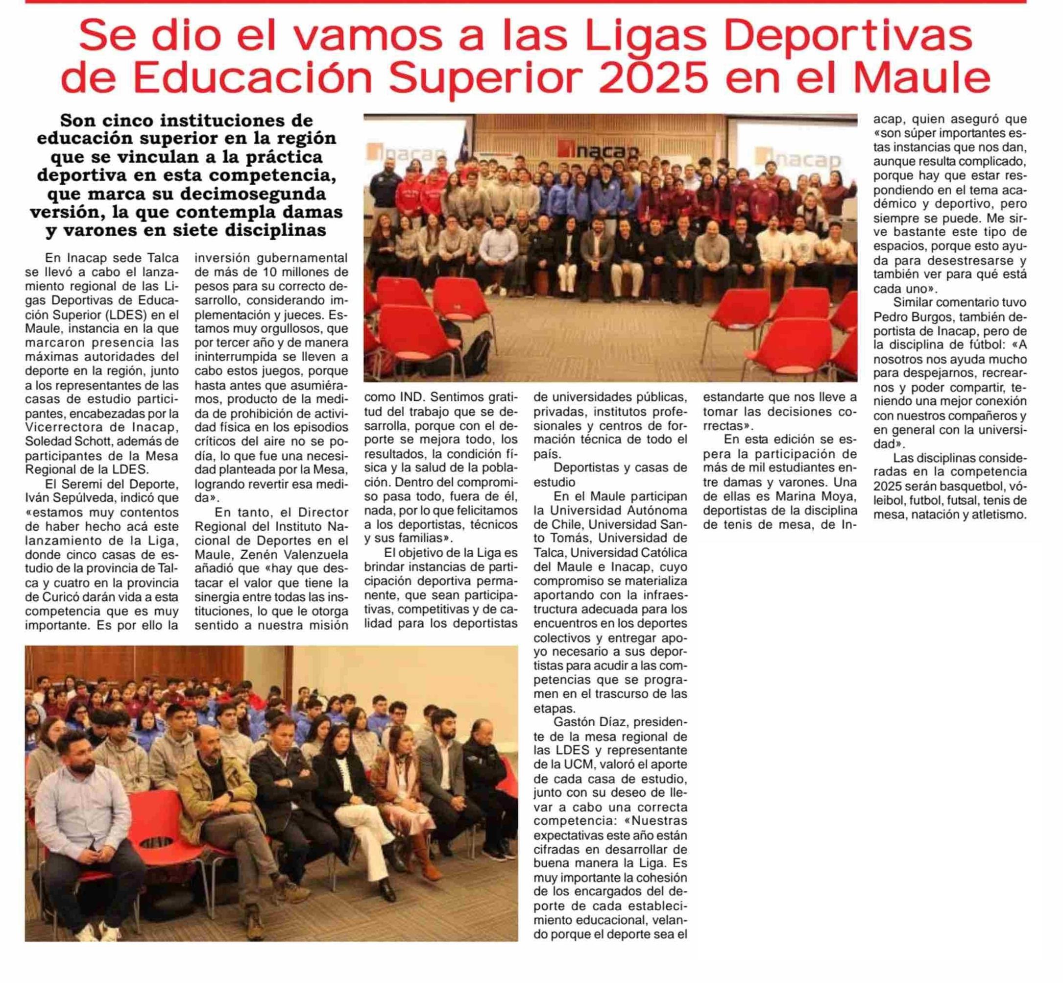 Se dio el vamos a las Ligas Deportivas de Educación Superior 2025 en el Maule