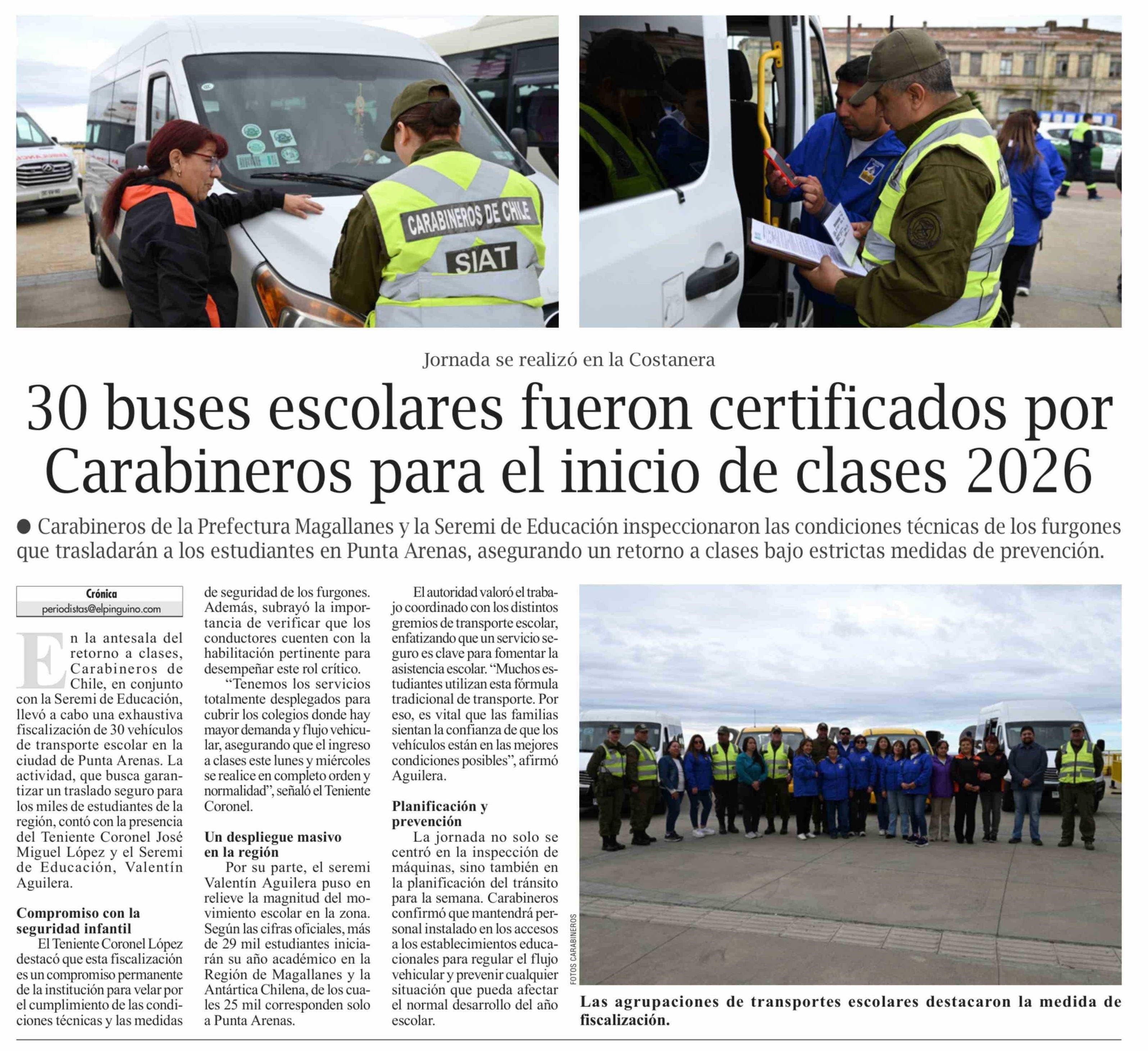 30 Buses escolares fueron certificados por Carabineros para el inicio de clases 2026