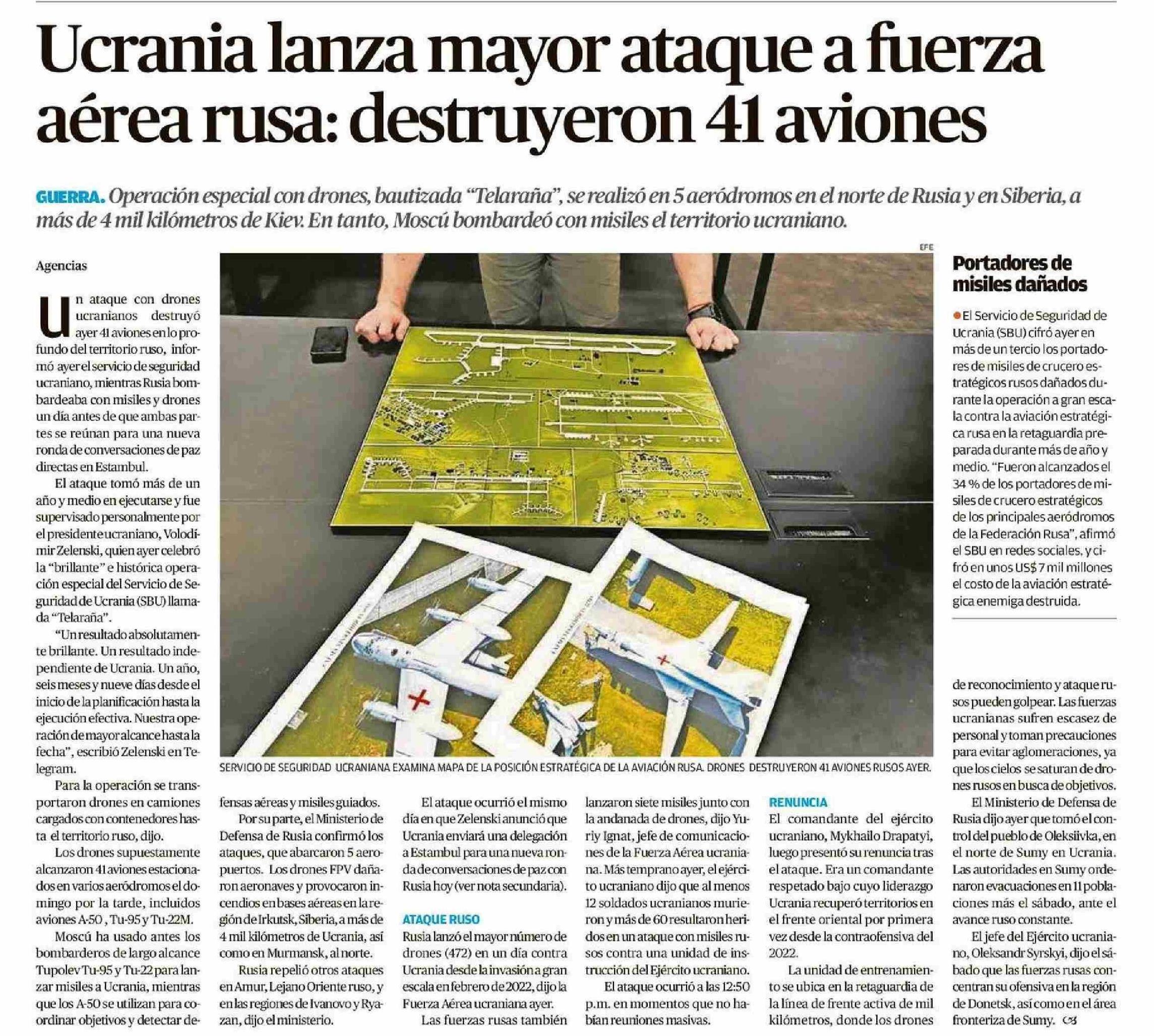 Ucrania lanza mayor ataque a fuerza aérea rusa: destruyeron 41 aviones