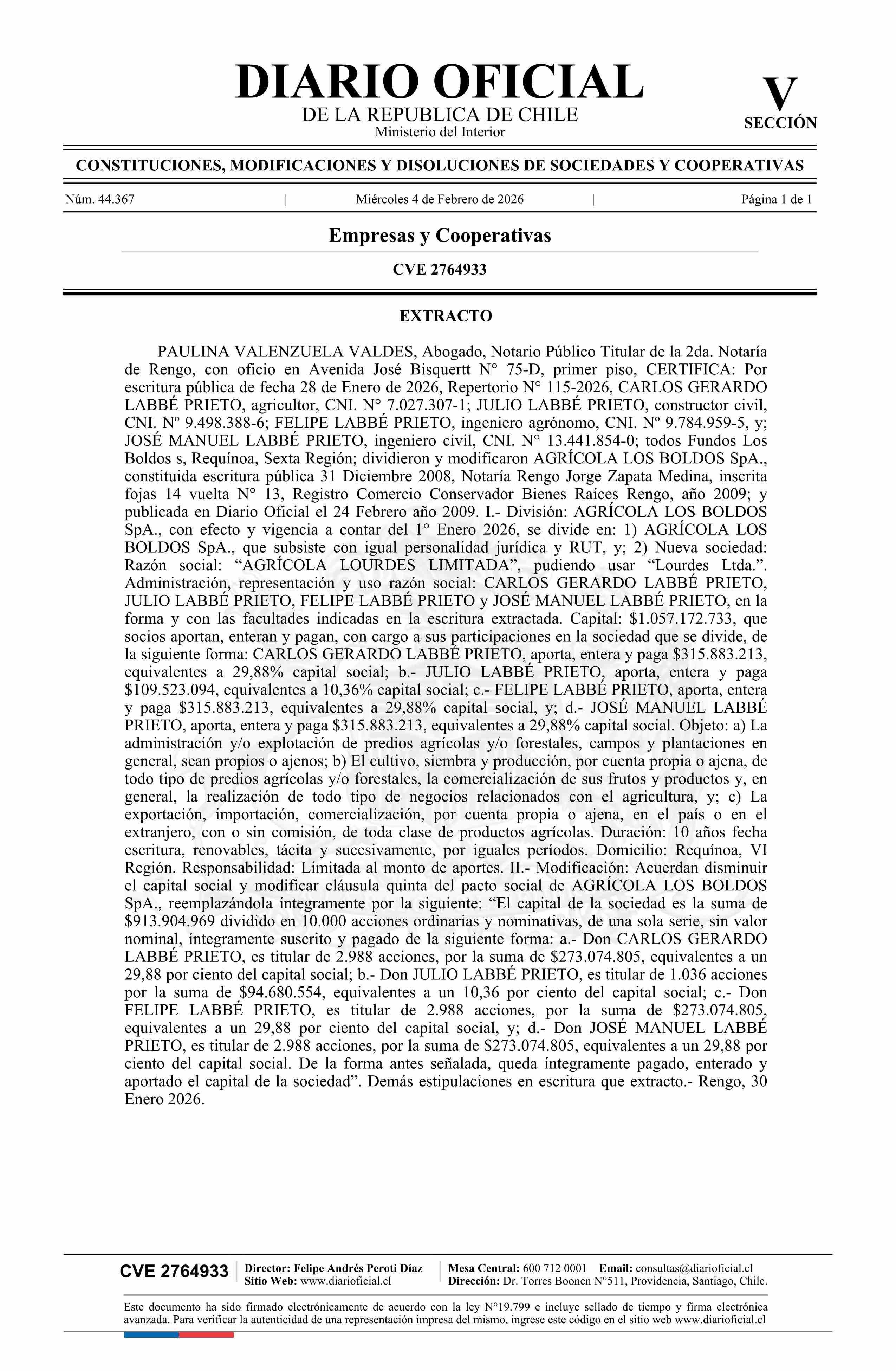 AGRÍCOLA LOS BOLDOS SpA 76.053.651-2