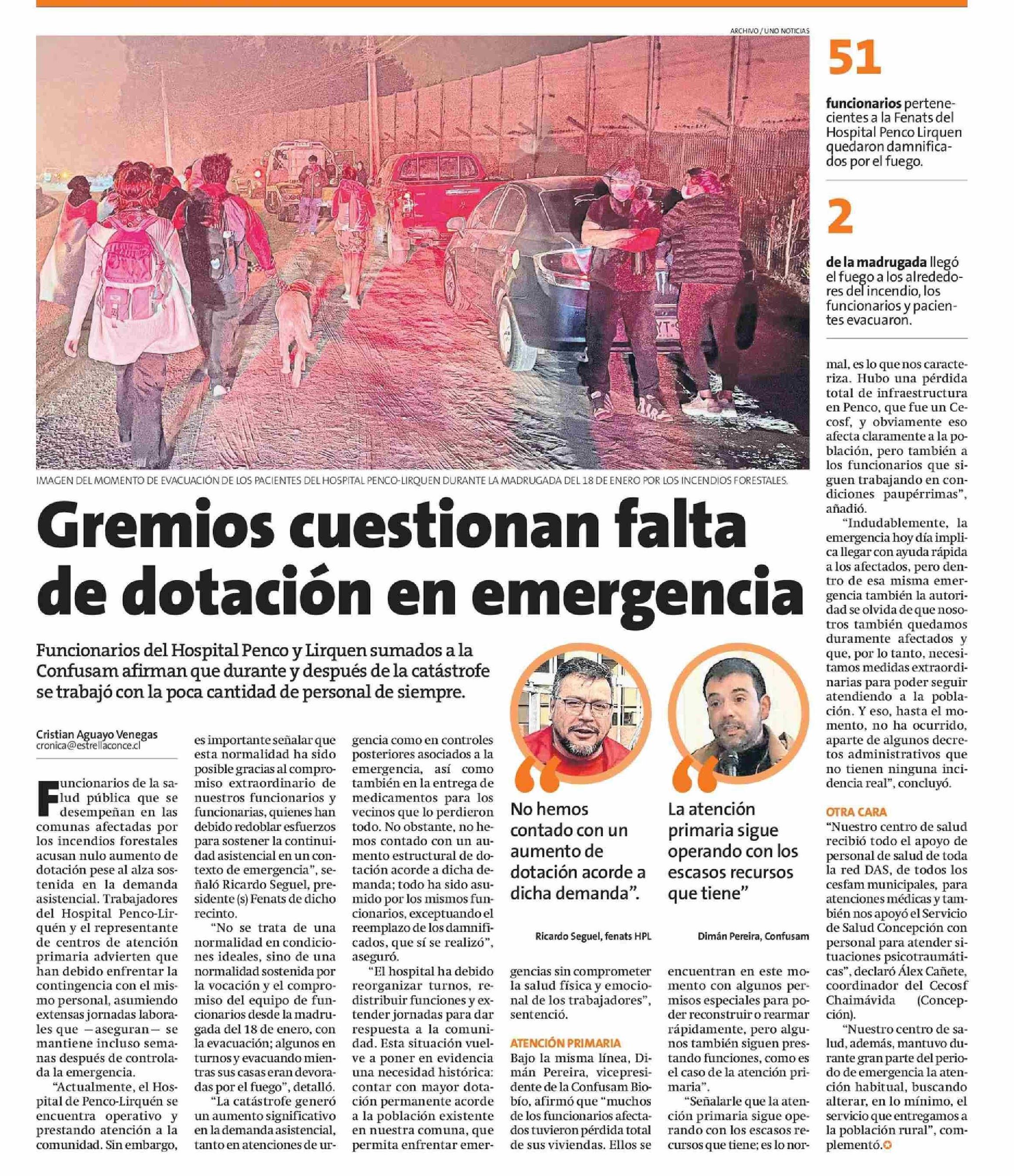 Gremios cuestionan falta de dotación en emergencia