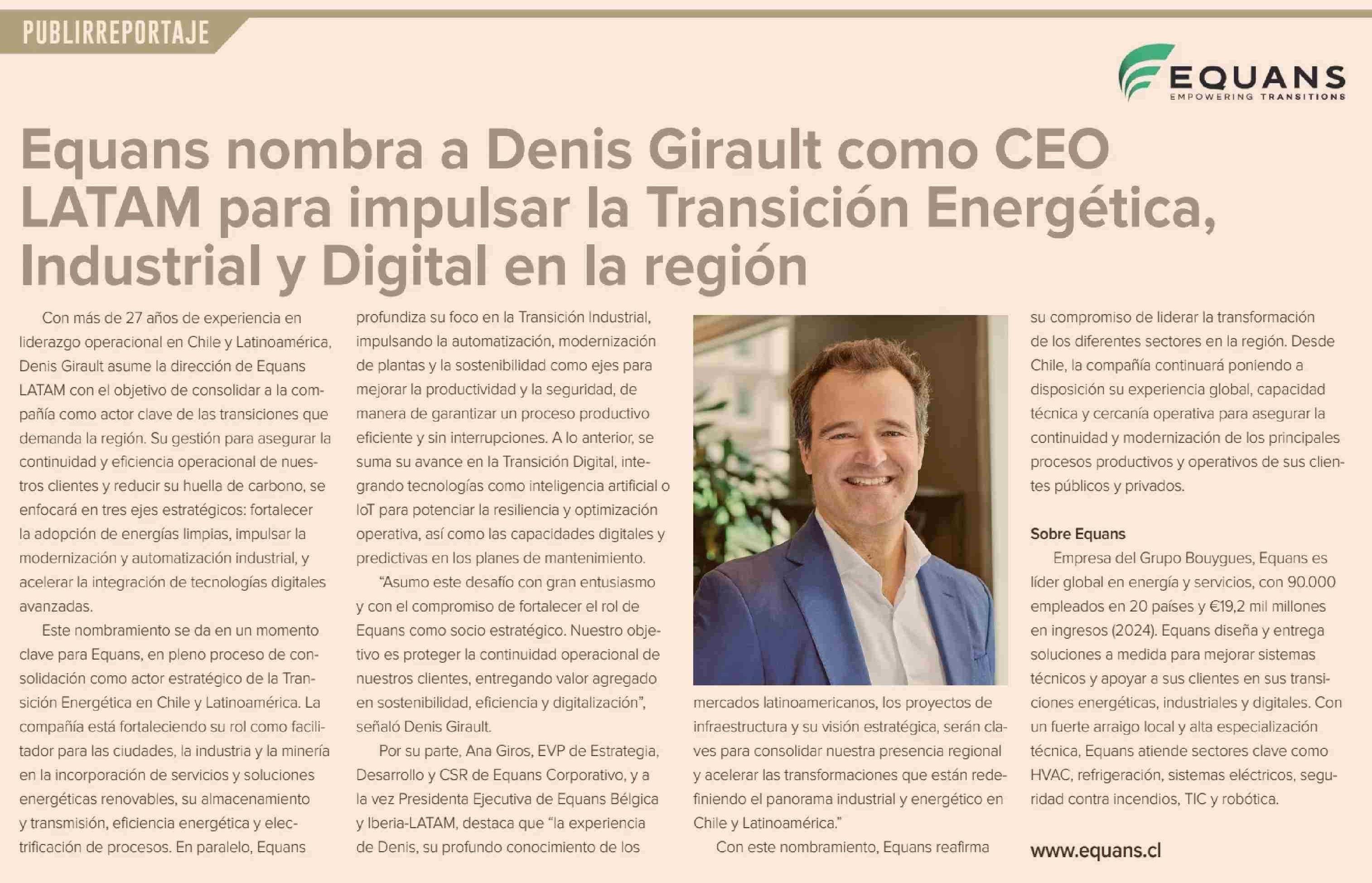 Equans nombra a Denis Girault como CEO LATAM para impulsar la Transición Energética, Industrial y Digital en la región