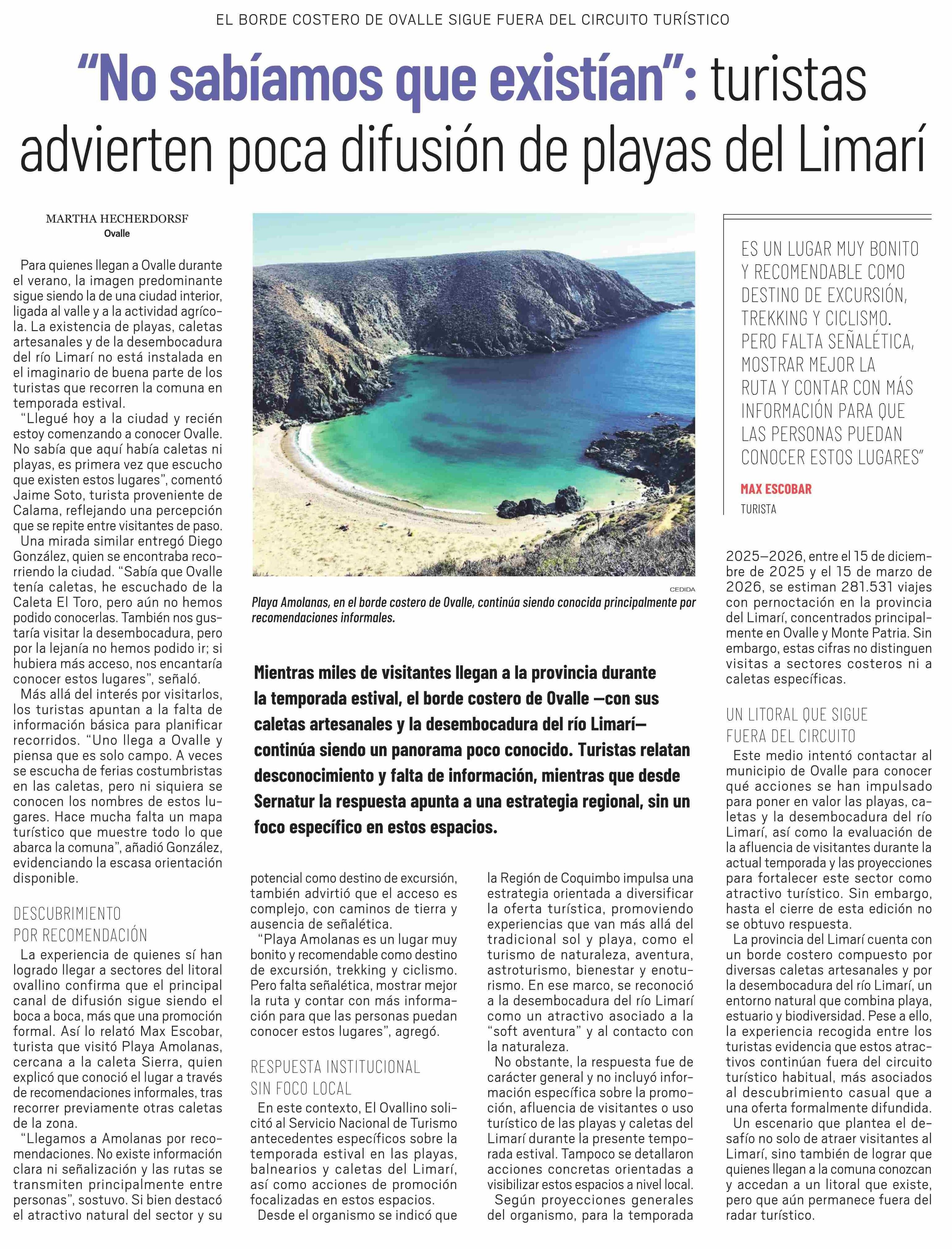 "No sabíamos que existían": turistas advierten poca difusión de playas del Limarí
