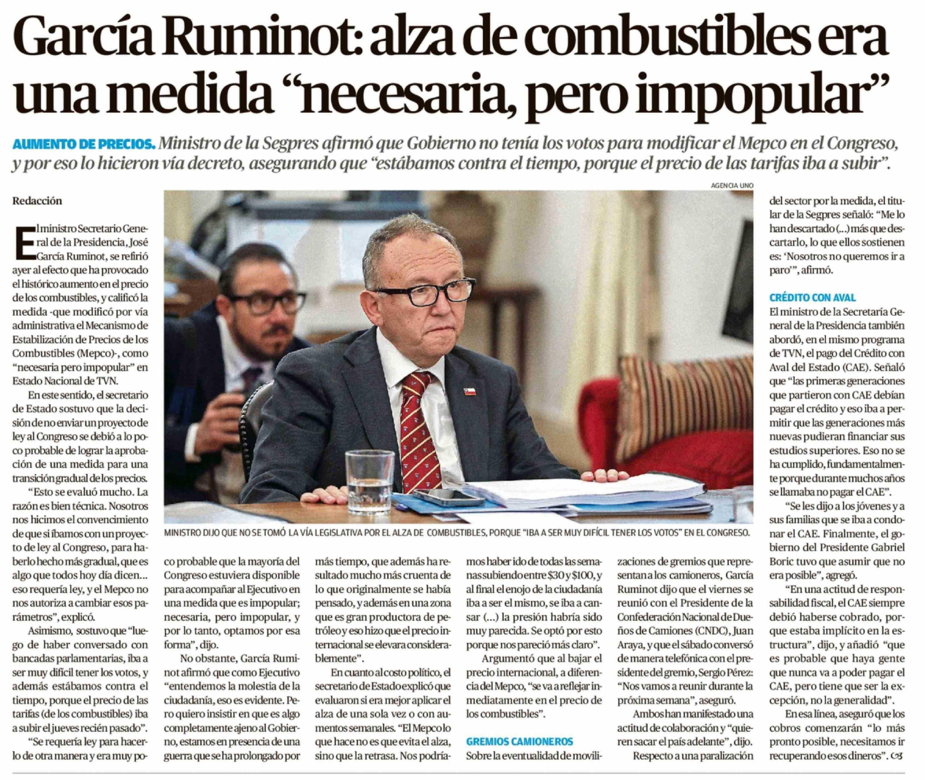 García Ruminot: alza de combustibles era una medida "necesaria, pero impopular"