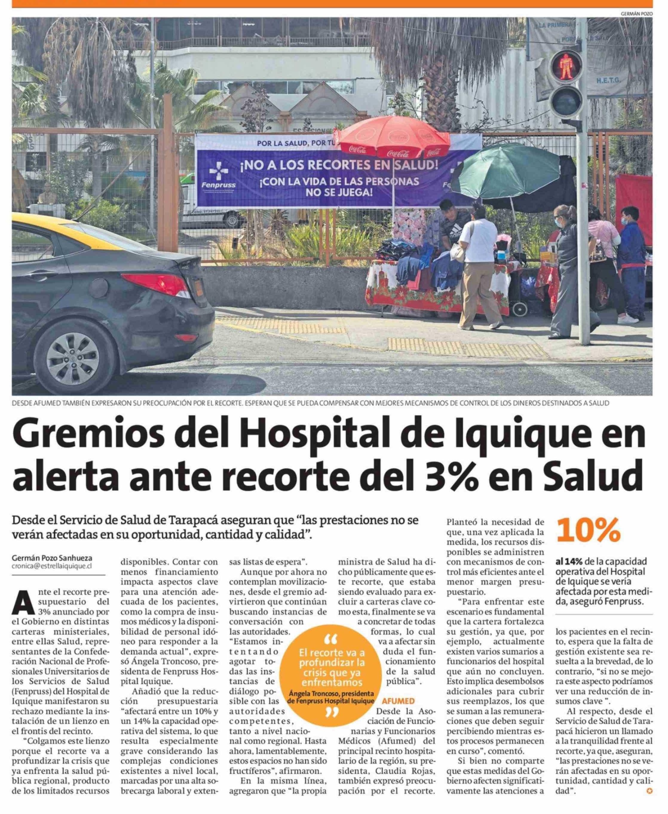 Gremios del Hospital de Iquique en alerta ante recorte del 3% en Salud