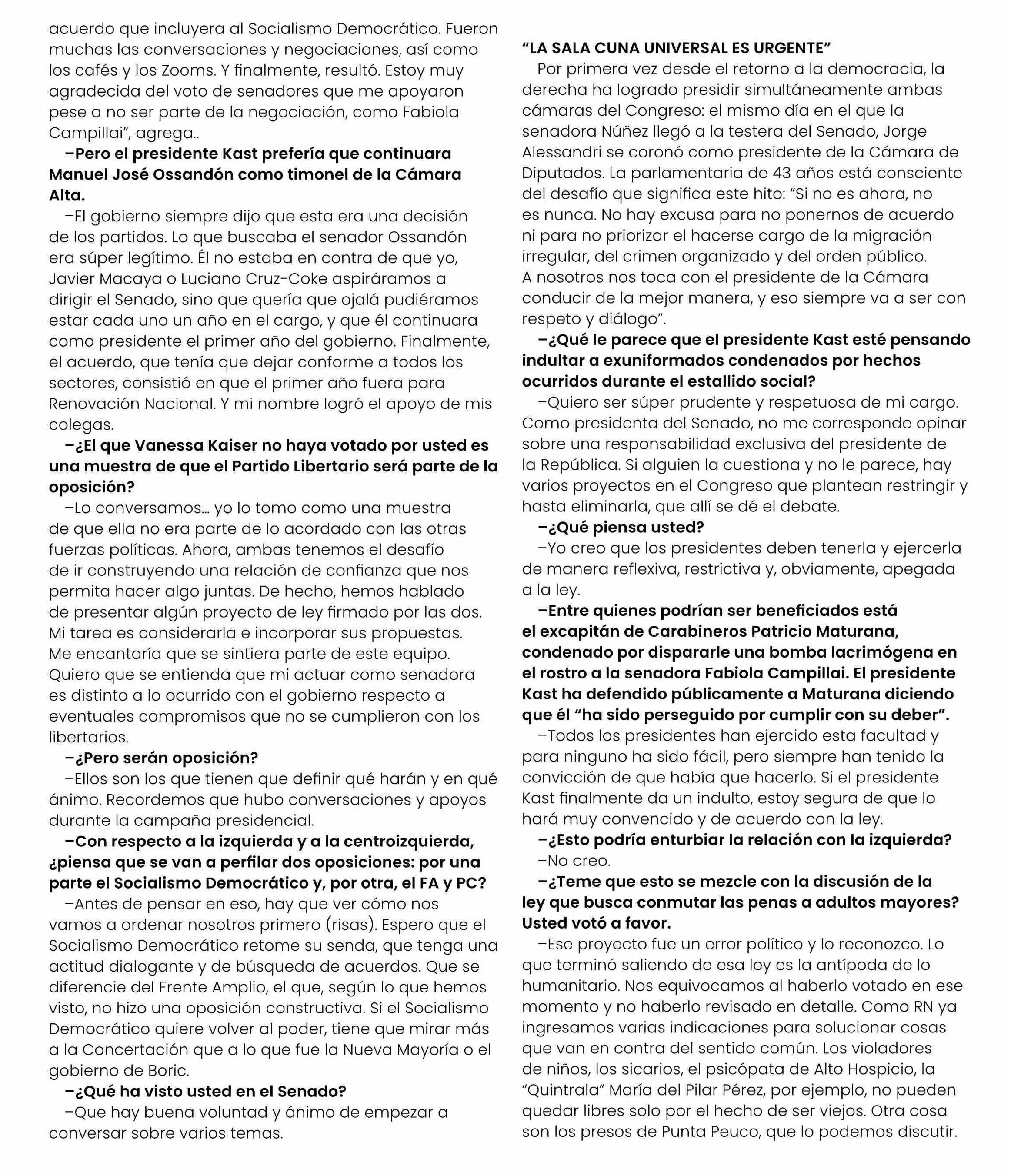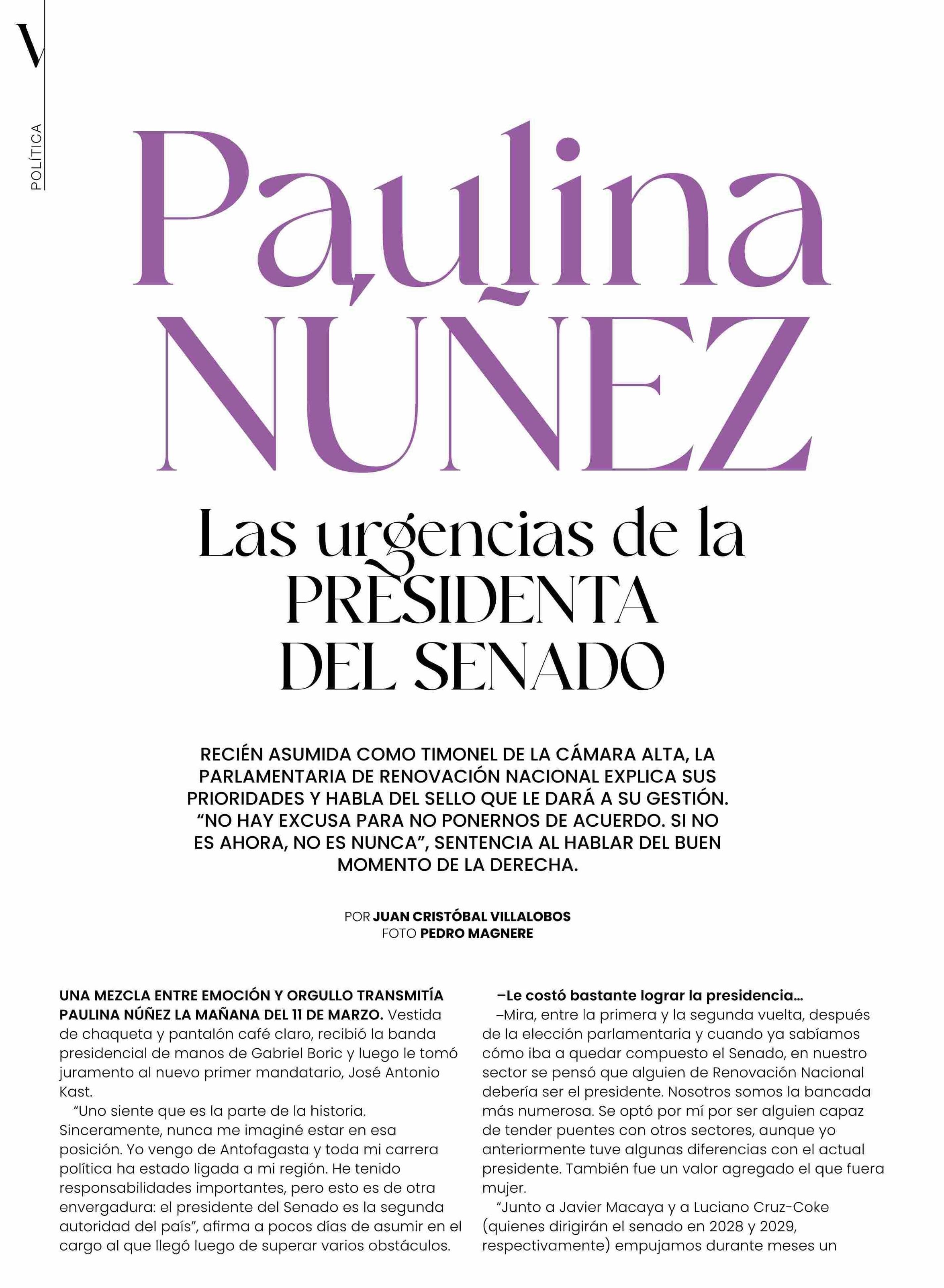 Paulina NUÑEZ Las urgencias de la PRESIDENTA DEL SENADO