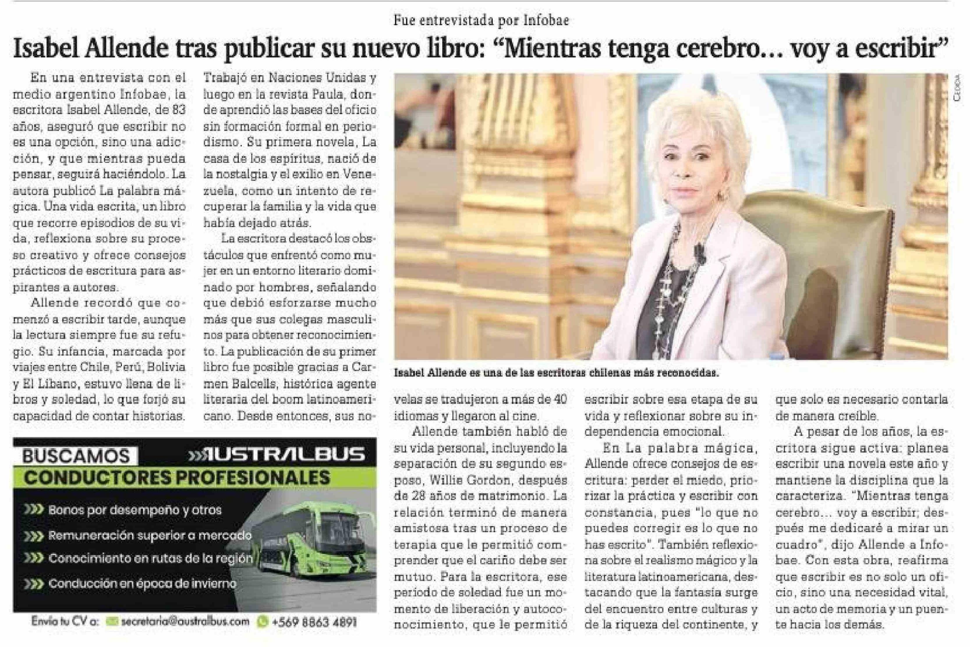 Isabel Allende tras publicar su nuevo libro: "Mientras tenga cerebro ... voy a escribir"