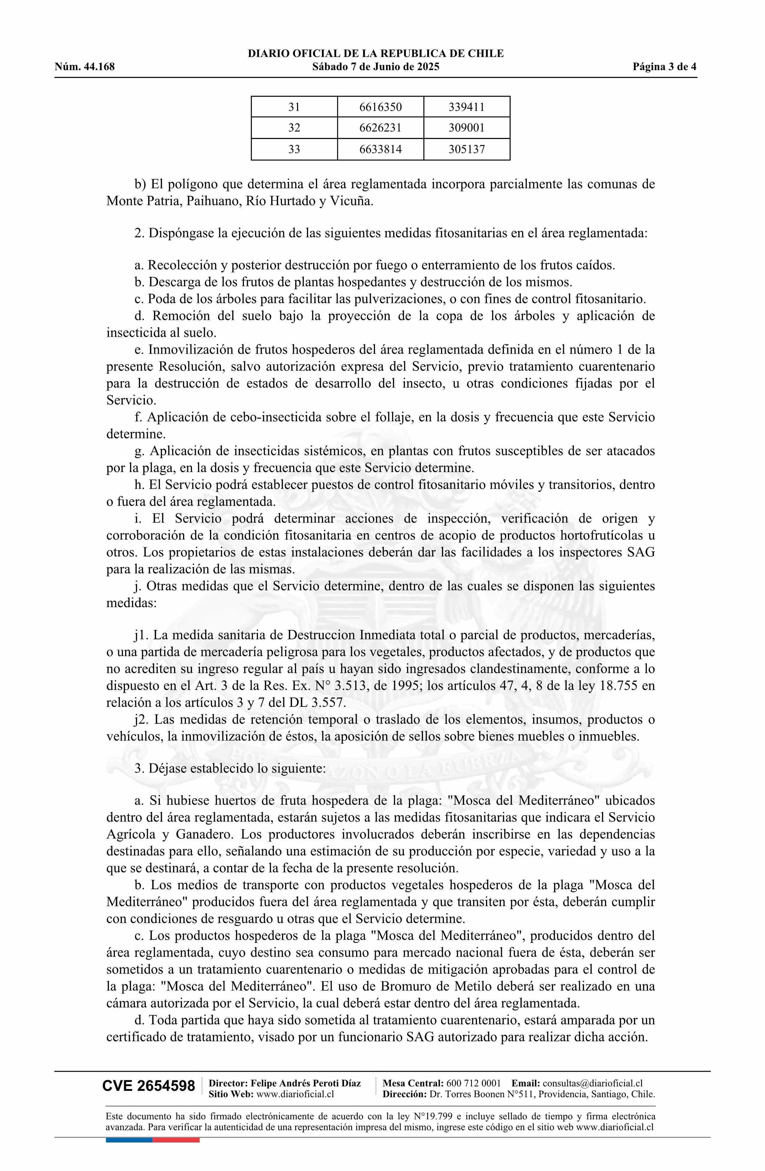 Título: Resolución exenta número 392, de 2025.- Establece regulaciones cuarentenarias para el control y erradicación de la Mosca del Mediterraneo (Ceratitis capitata W.) en los lugares que indica