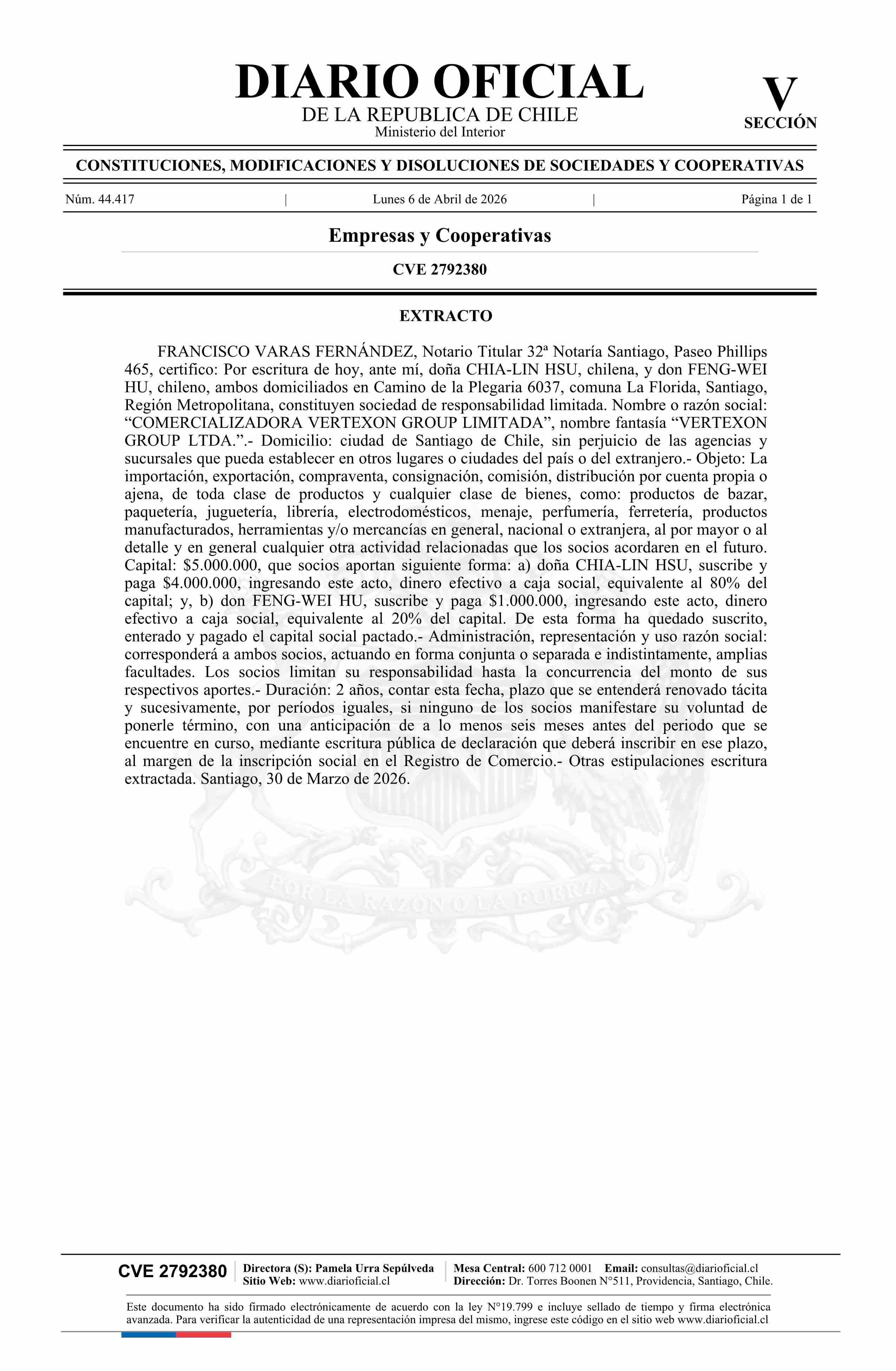 COMERCIALIZADORA VERTEXON GROUP LIMITADA