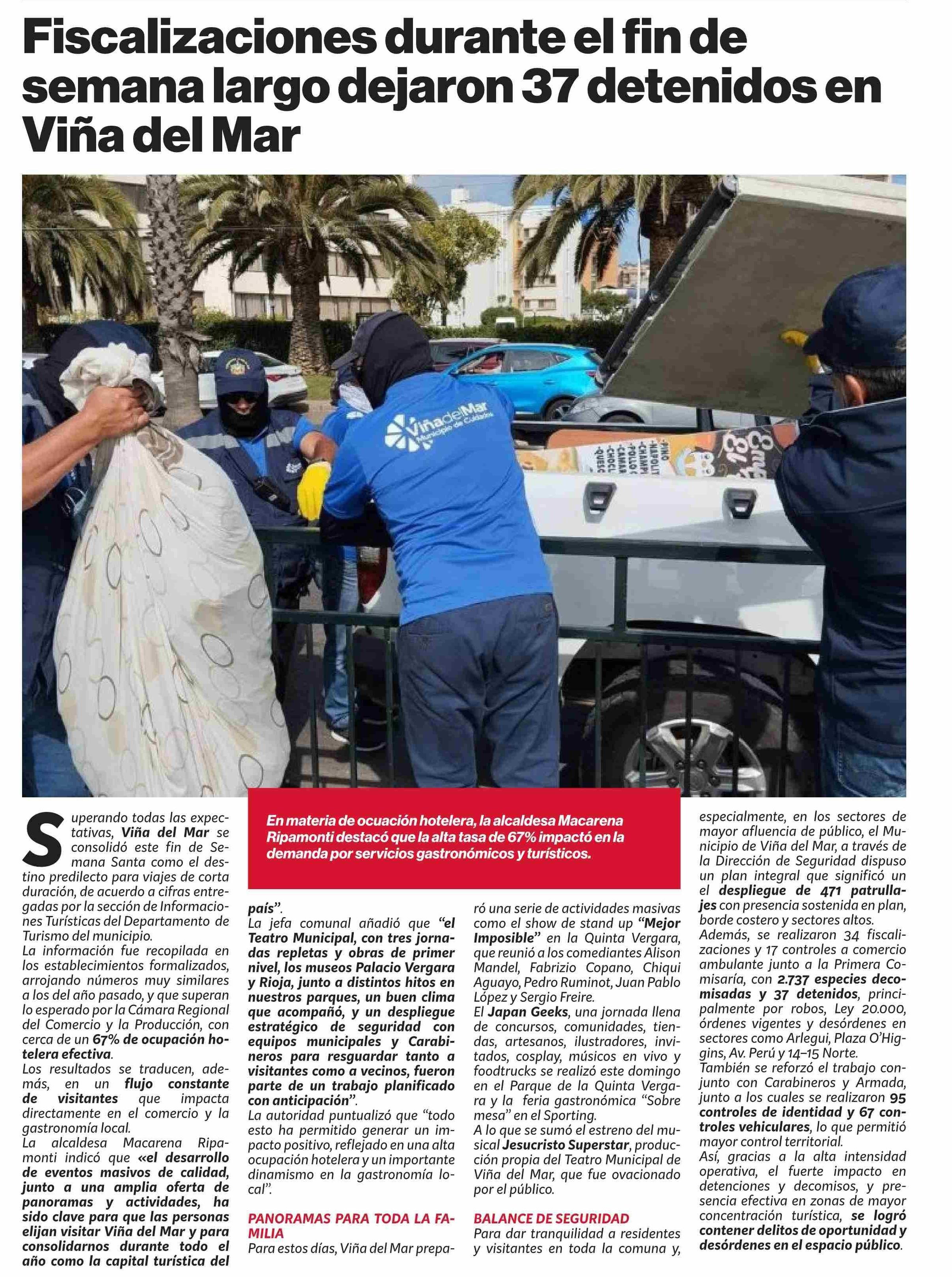 Fiscalizaciones durante el fin de semana largo dejaron 37 detenidos en Viña del Mar
