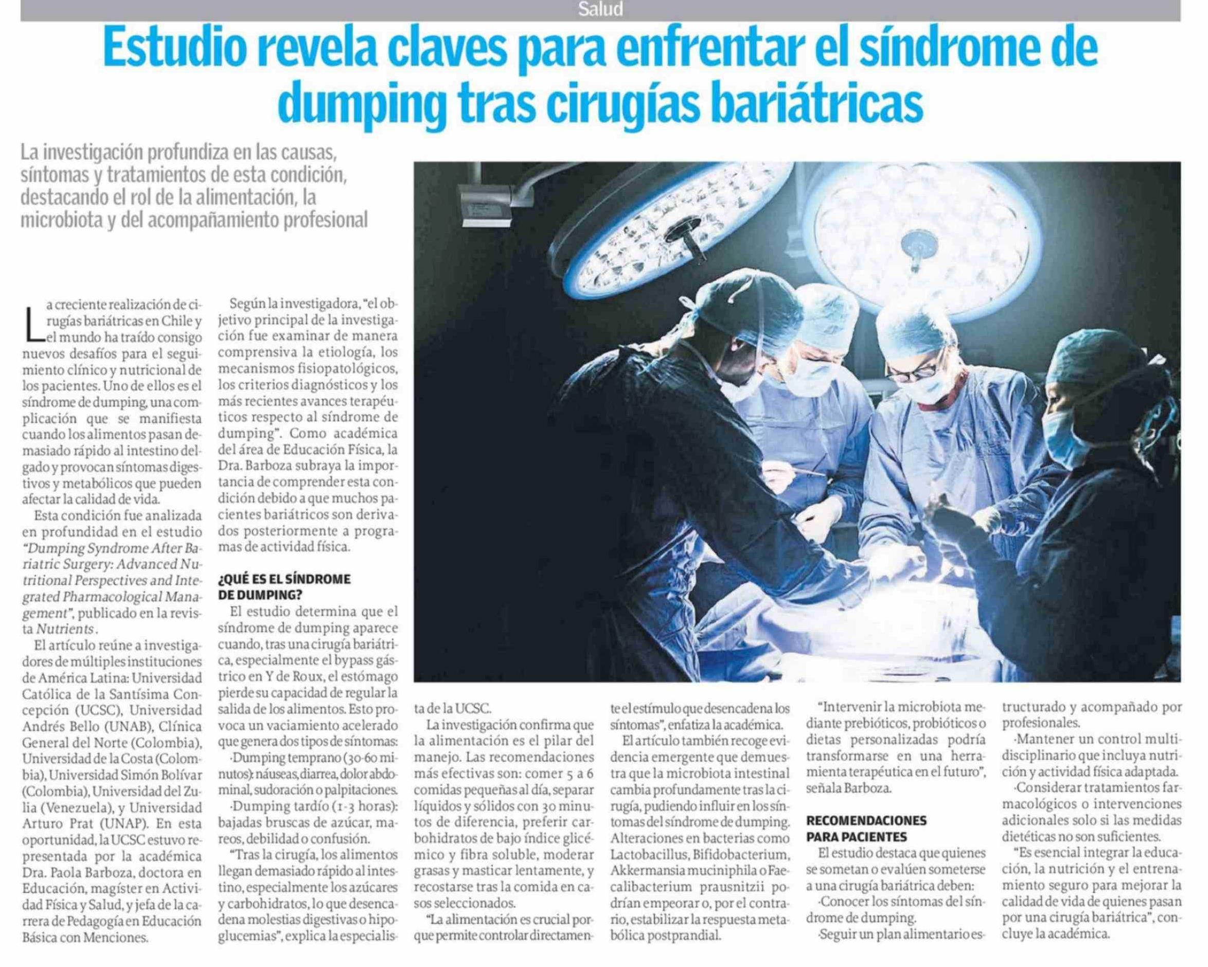 Estudio revela claves para enfrentar el síndrome de dumping tras cirugías bariátricas