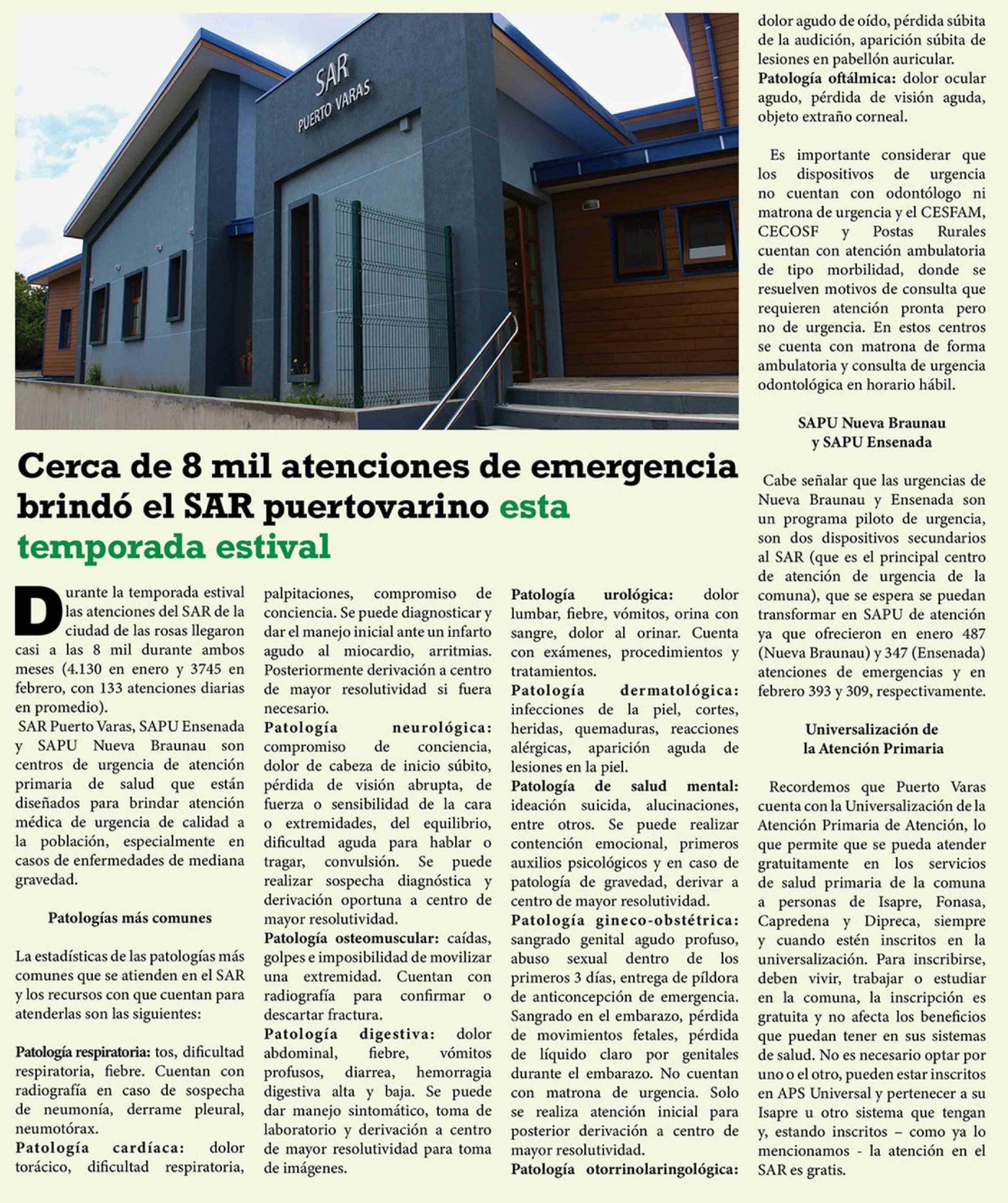 Cerca de 8 mil atenciones de emergencia brindó el SAR puertovarino esta temporada estival