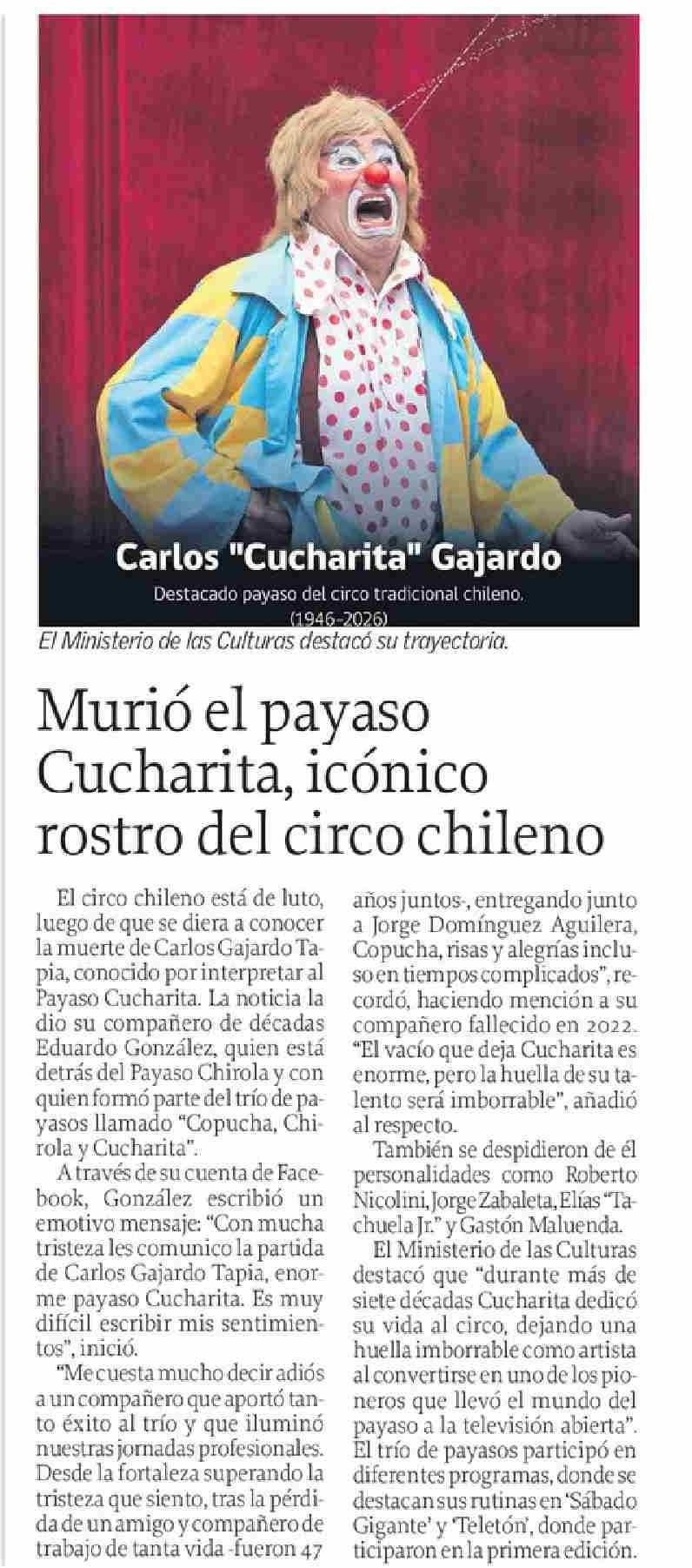 Título: Murió el payaso Cucharita, icónico rostro del circo chileno