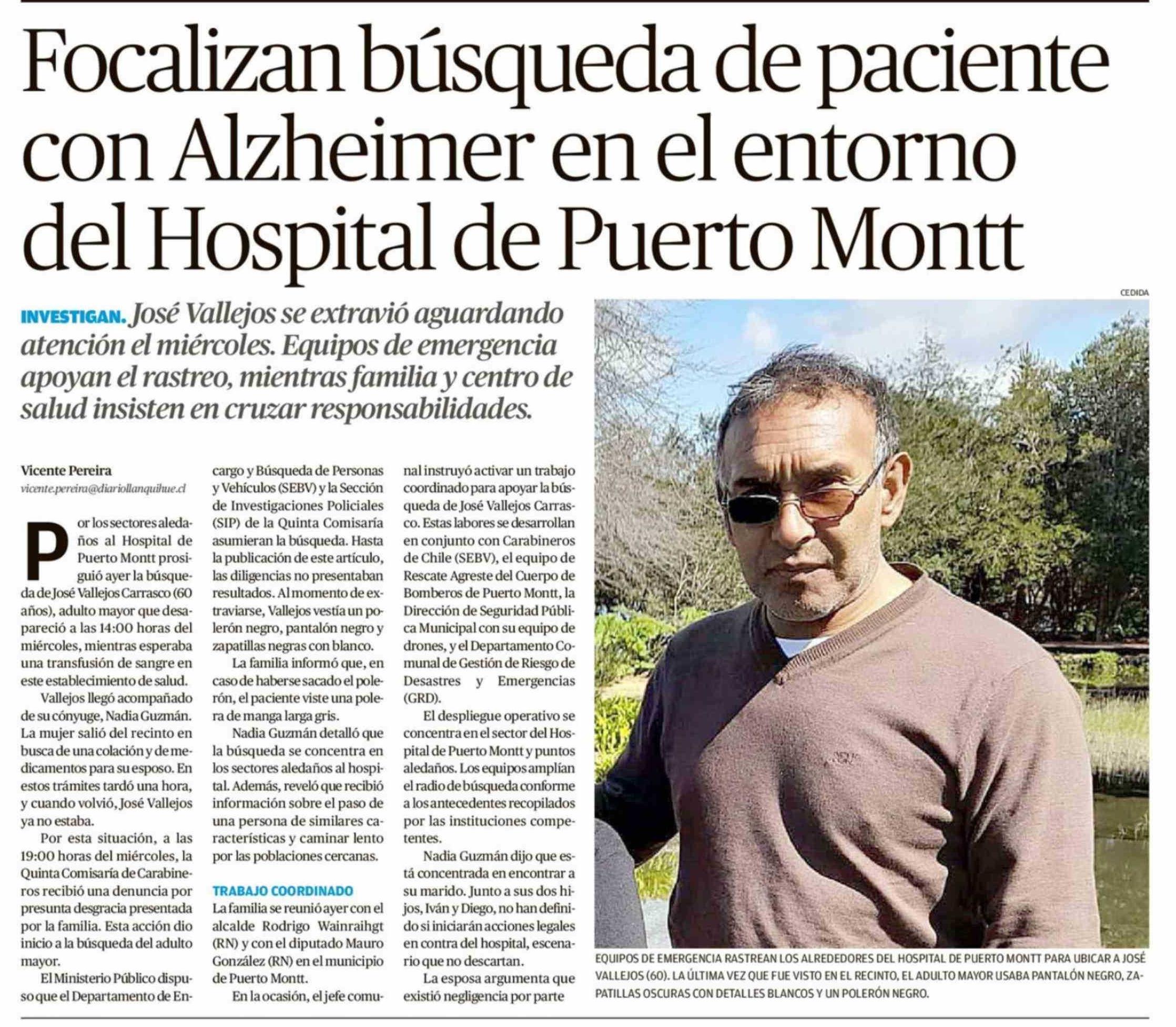 Título: Focalizan búsqueda de paciente con Alzheimer en el entorno del Hospital de Puerto Montt