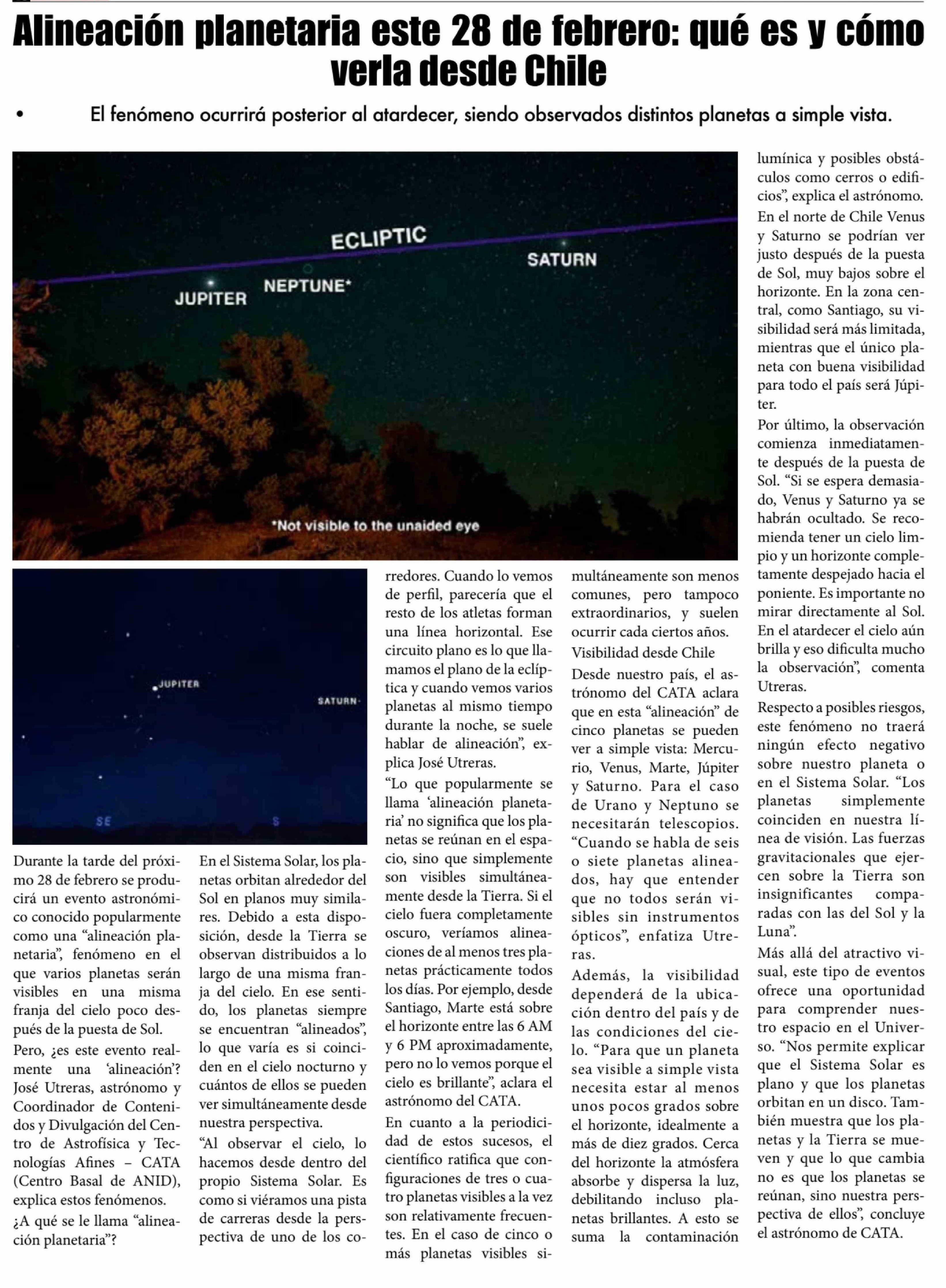 Alineación planetaria este 28 de febrero: que es y cómo verla desde Chile