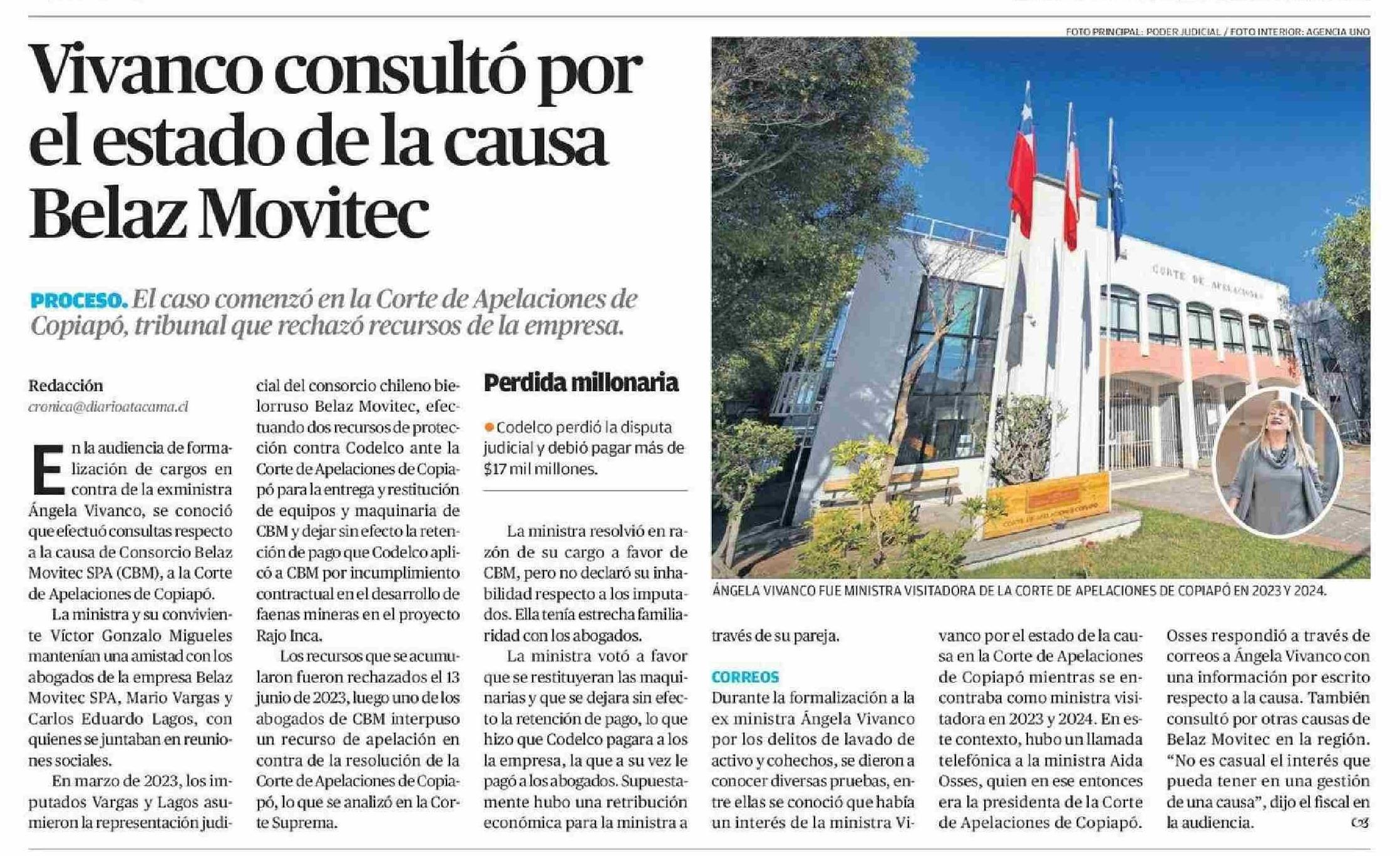Vivanco consultó por el estado de la causa Belaz Movitec