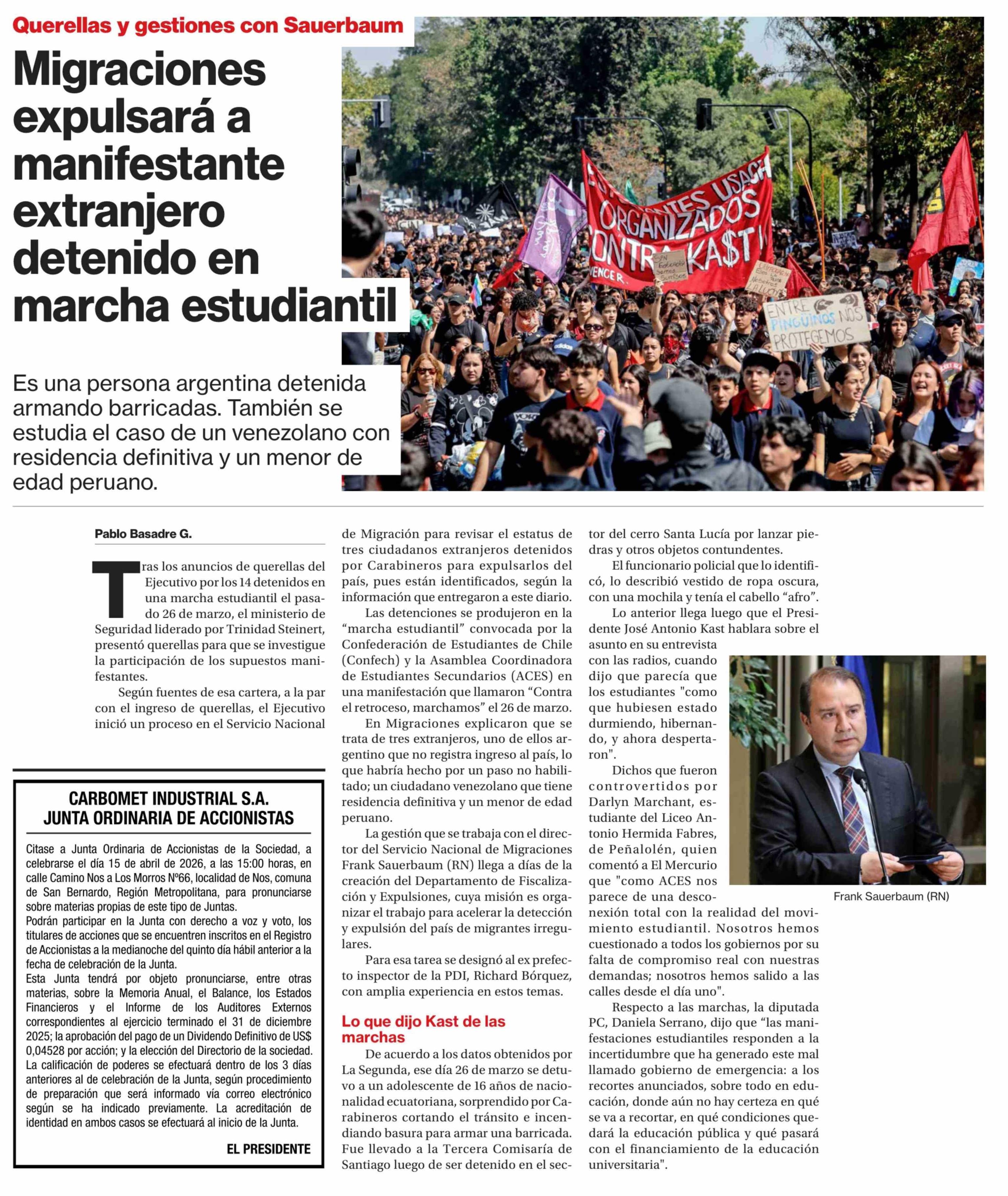 Migraciones expulsará a manifestante extranjero detenido en marcha estudiantil