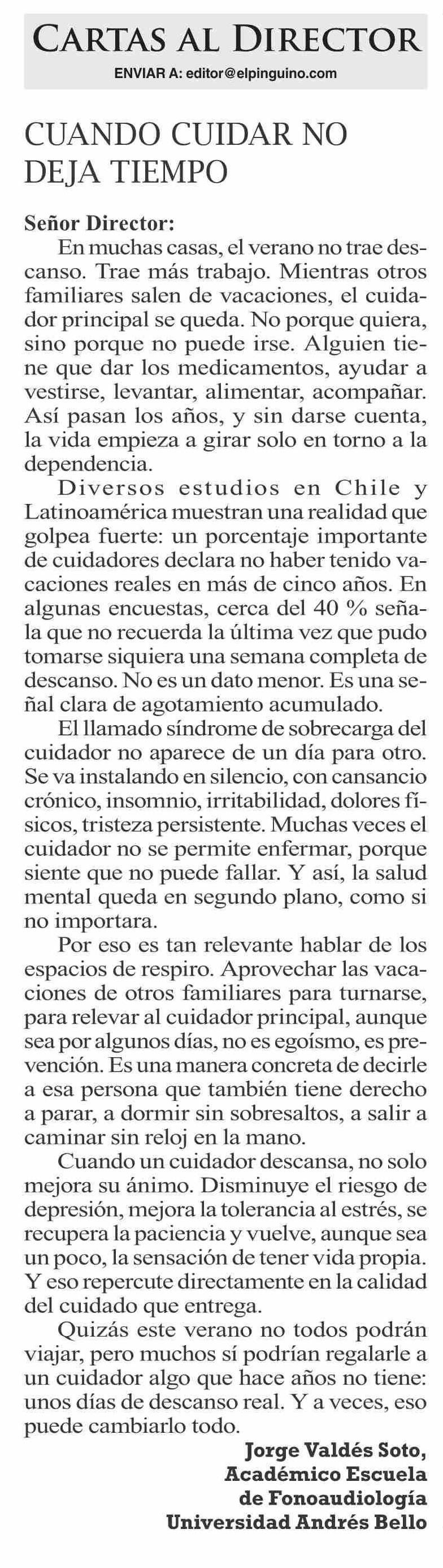 Cartas: CUANDO CUIDAR NO DEJA TIEMPO