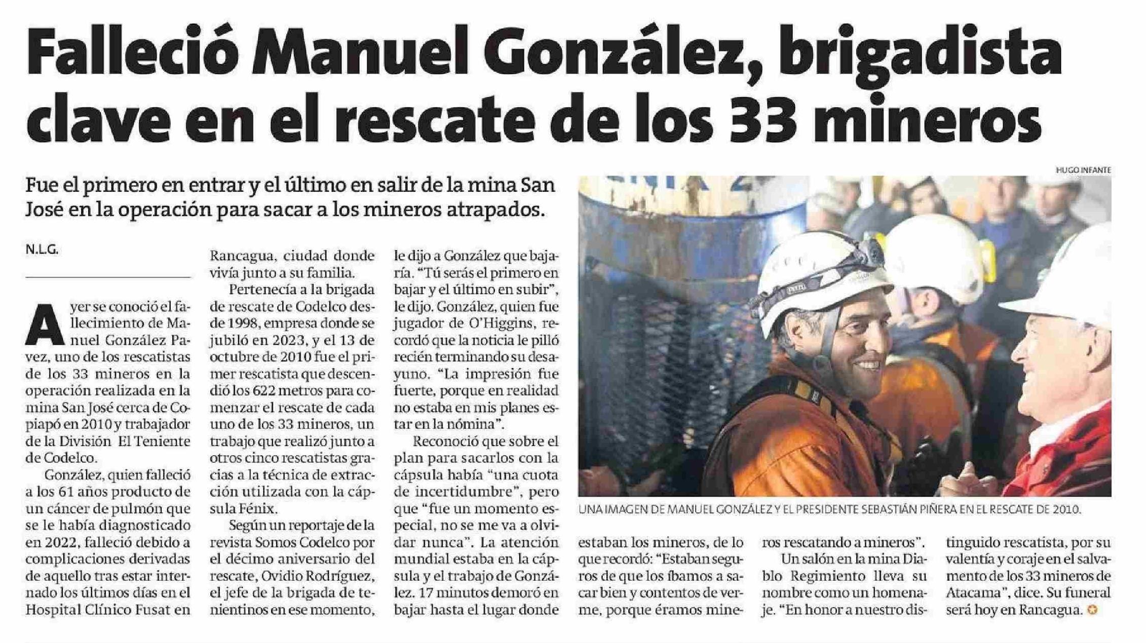 Falleció Manuel González, brigadista clave en el rescate de los 33 mineros