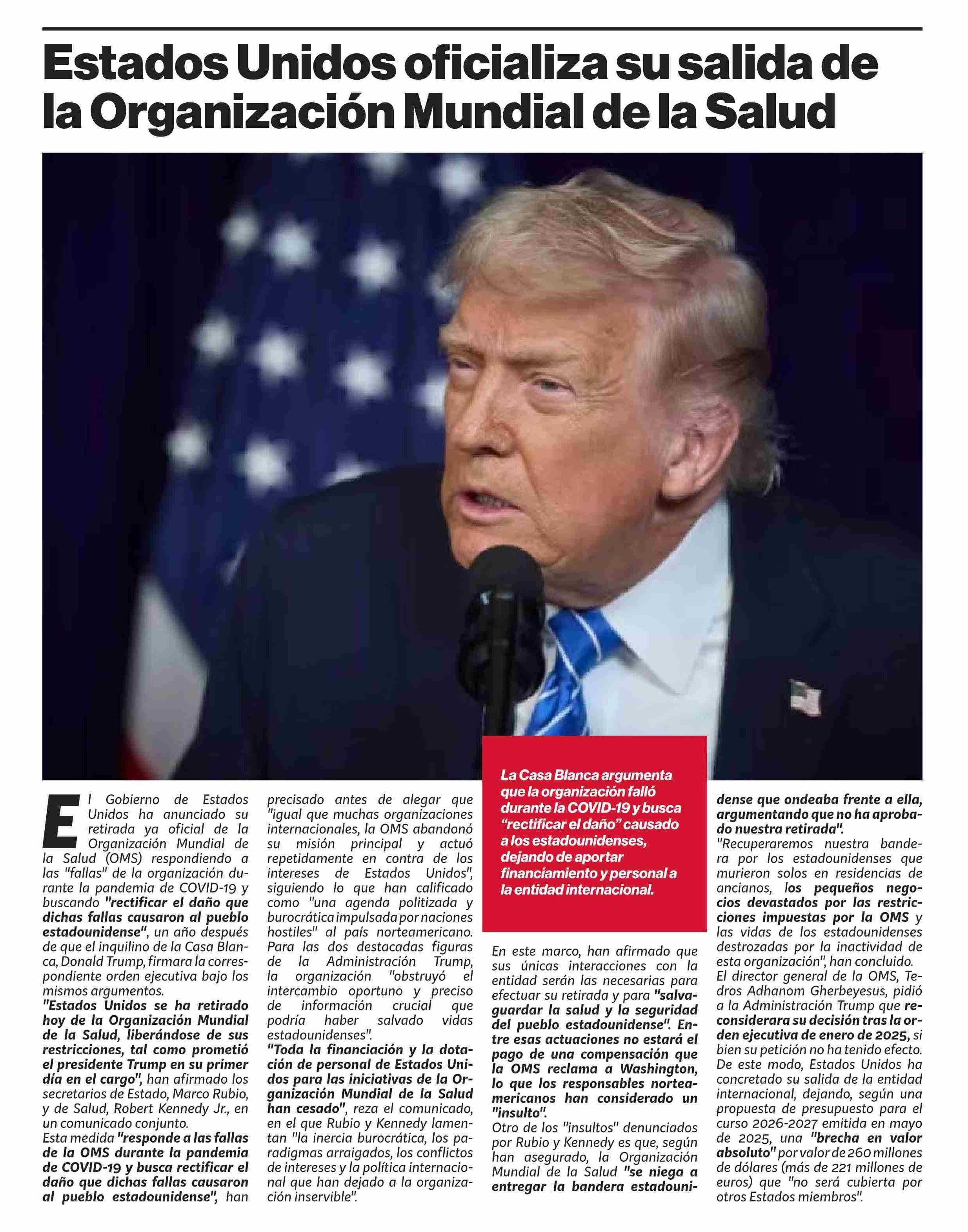 Estados Unidos oficializa su salida de la Organización Mundial de la Salud
