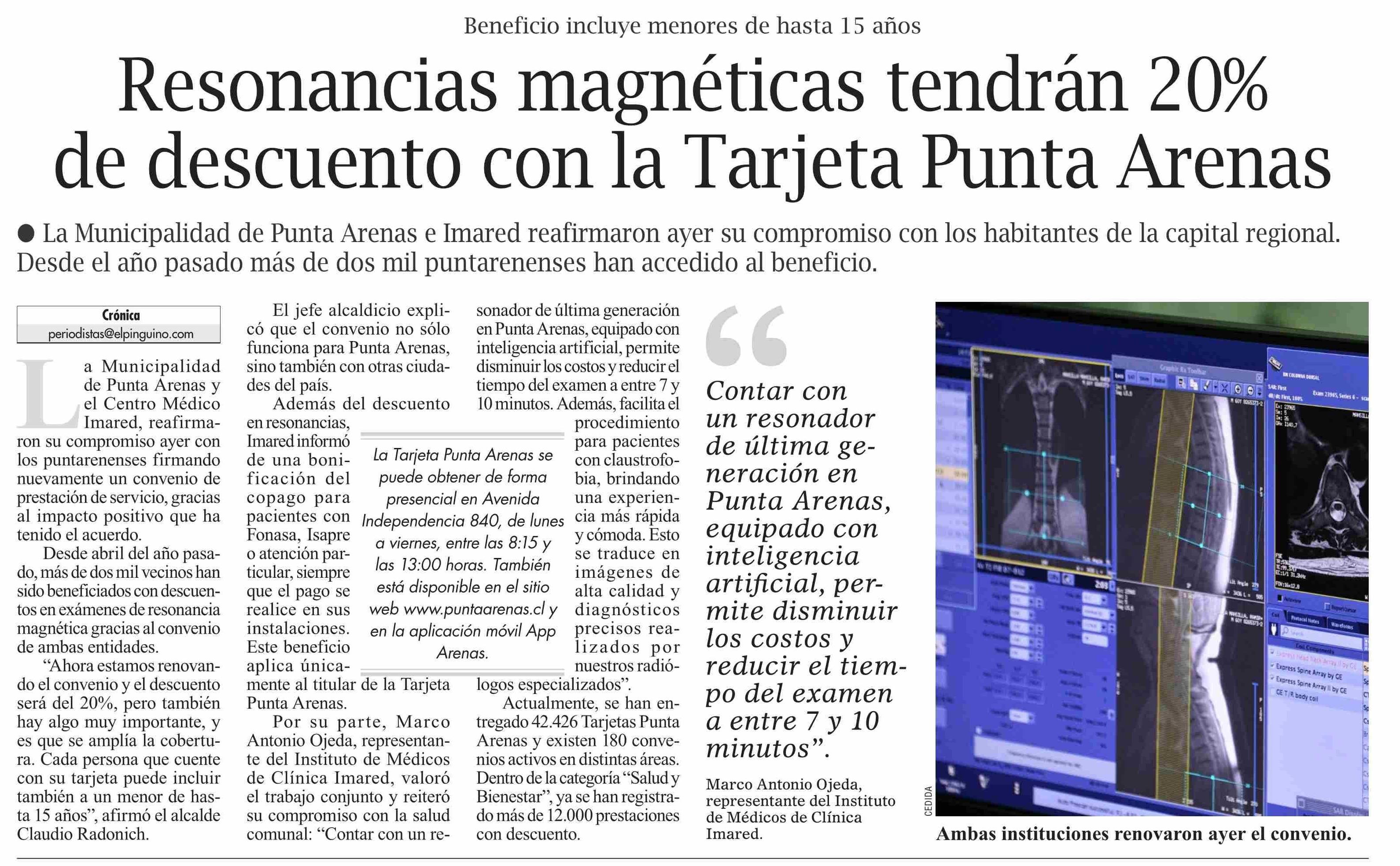 Resonancias magnéticas tendrán 20% de descuento con la Tarjeta Punta Arenas