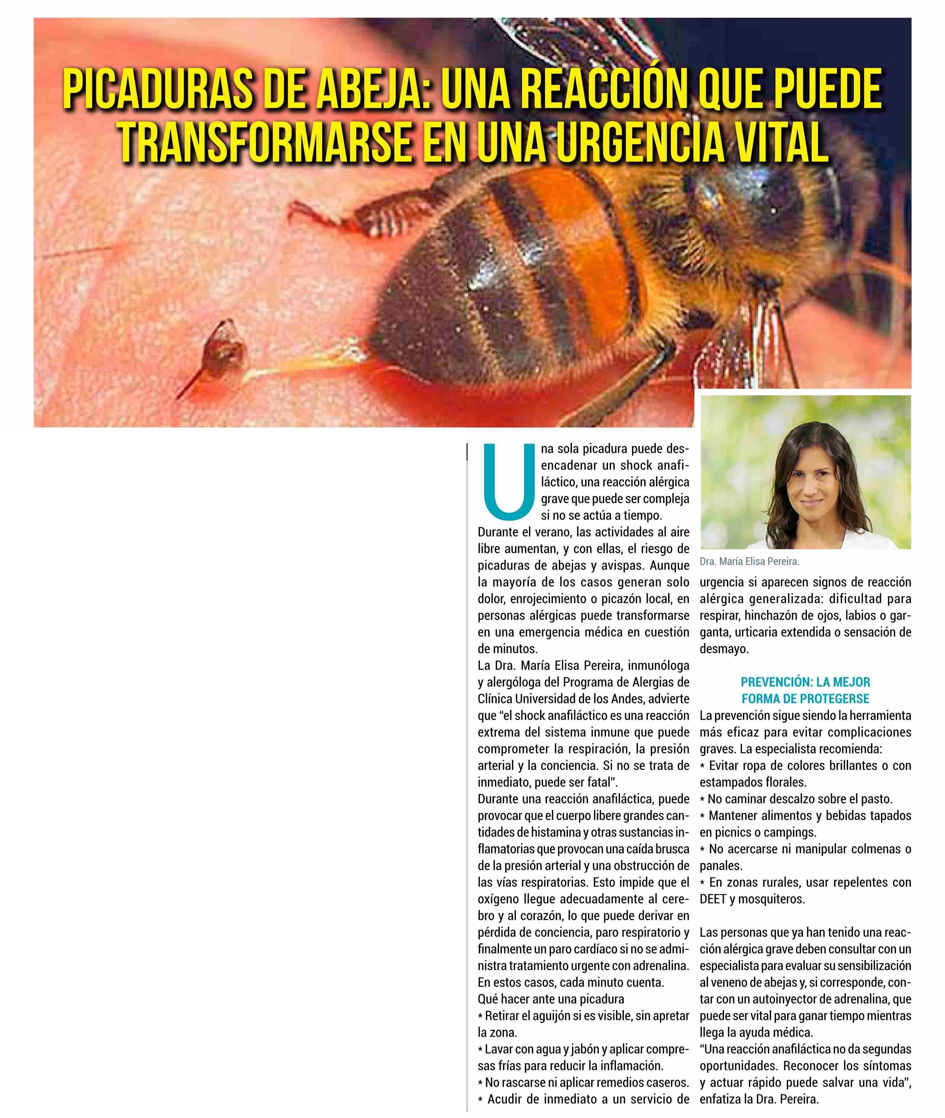 PICADURAS DE ABEJA: UNA REACCIÓN QUE PUEDE TRASNFORMARSE EN UNA URGENCIA VITAL