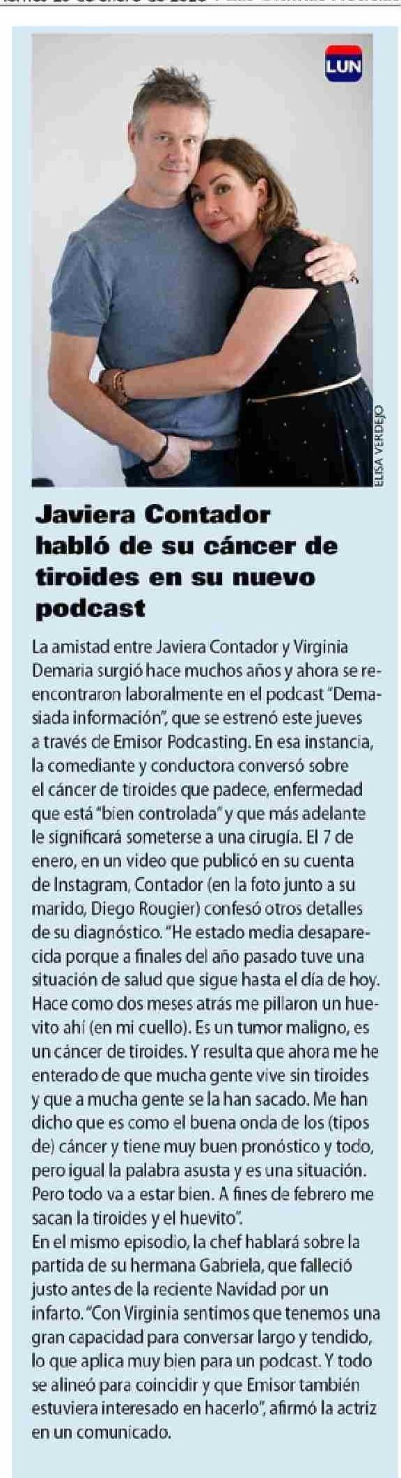 Javiera Contador habló de su cáncer de tiroides en su nuevo podcast