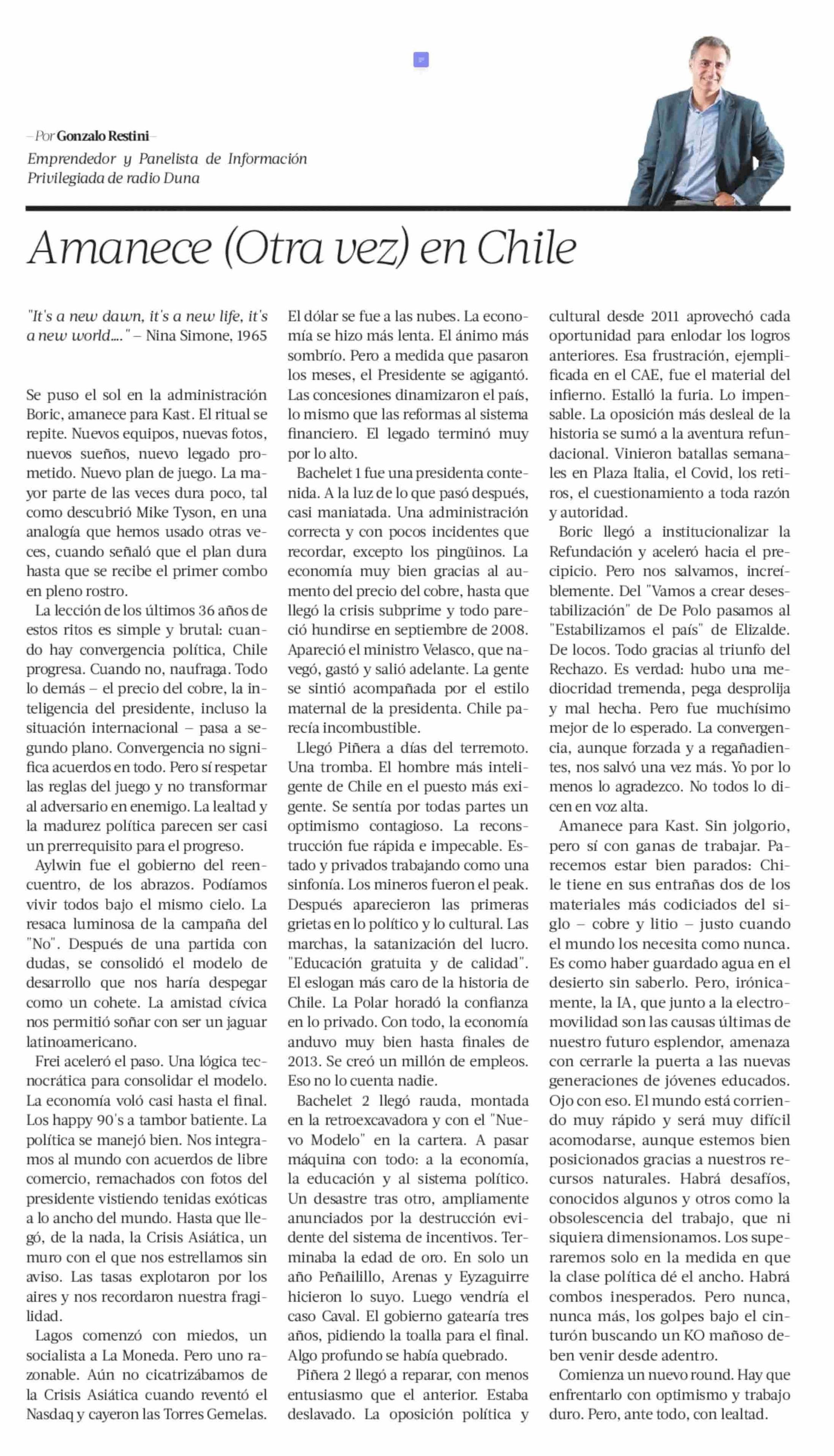 Título: COLUMNAS DE OPINIÓN: Amanece (Otra vez) en Chile